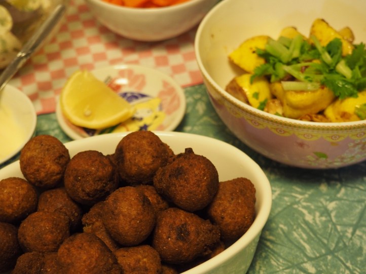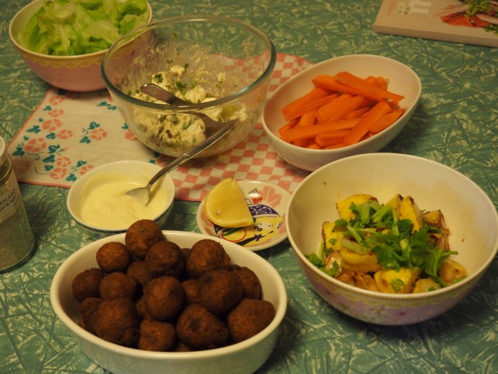 Friday night I made falafel. It was from a packet mix, but they were really nice.