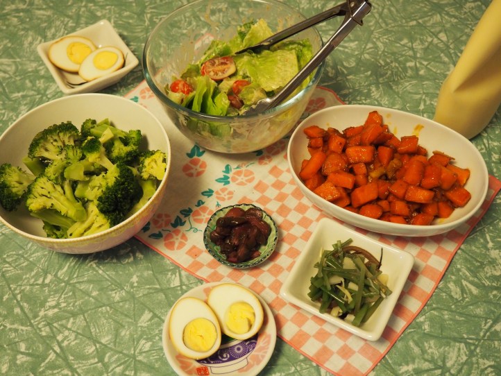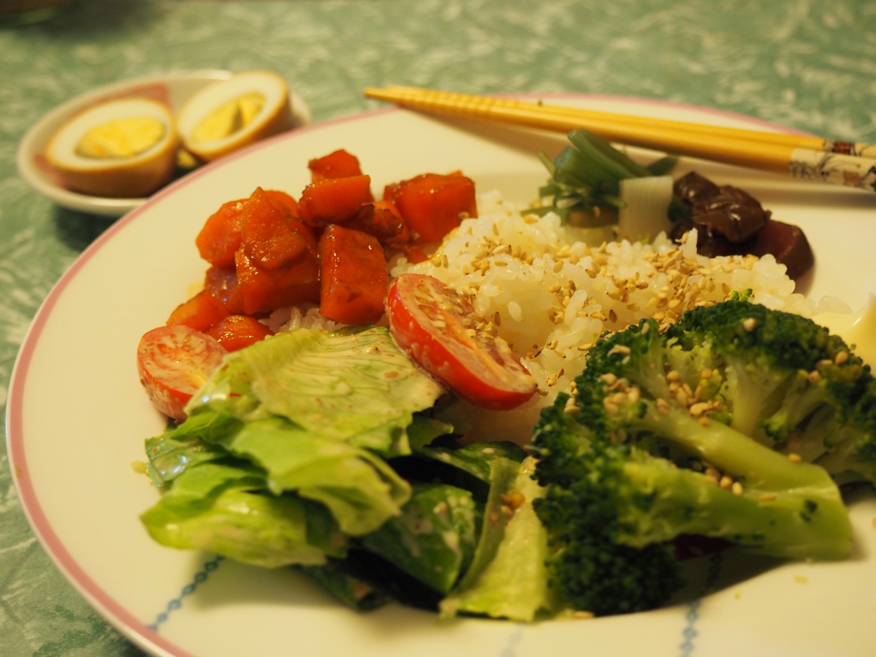 Ok, so we ate the eggs with some rice, sweet potato which I cooked with ginger, soy sauce and mirin (delicious) and some broccoli. A good dinner all up.