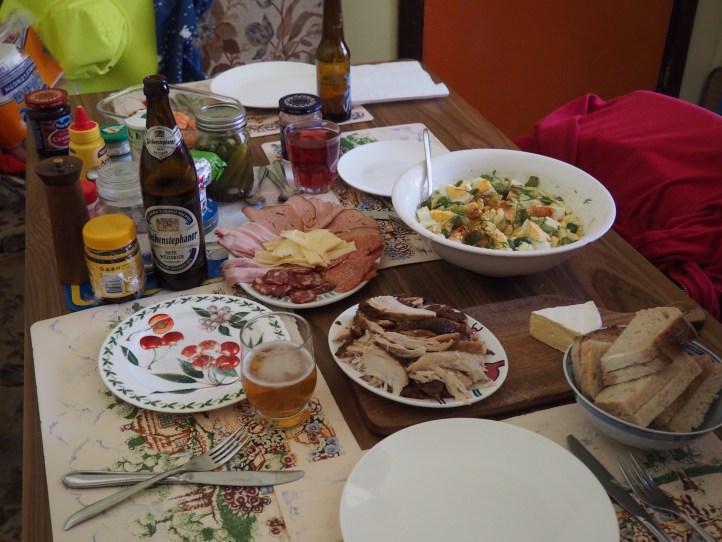 We had a quiet Christmas lunch with my mum and brother. Prawns, leftover turkey, potato salad, cold meats etc