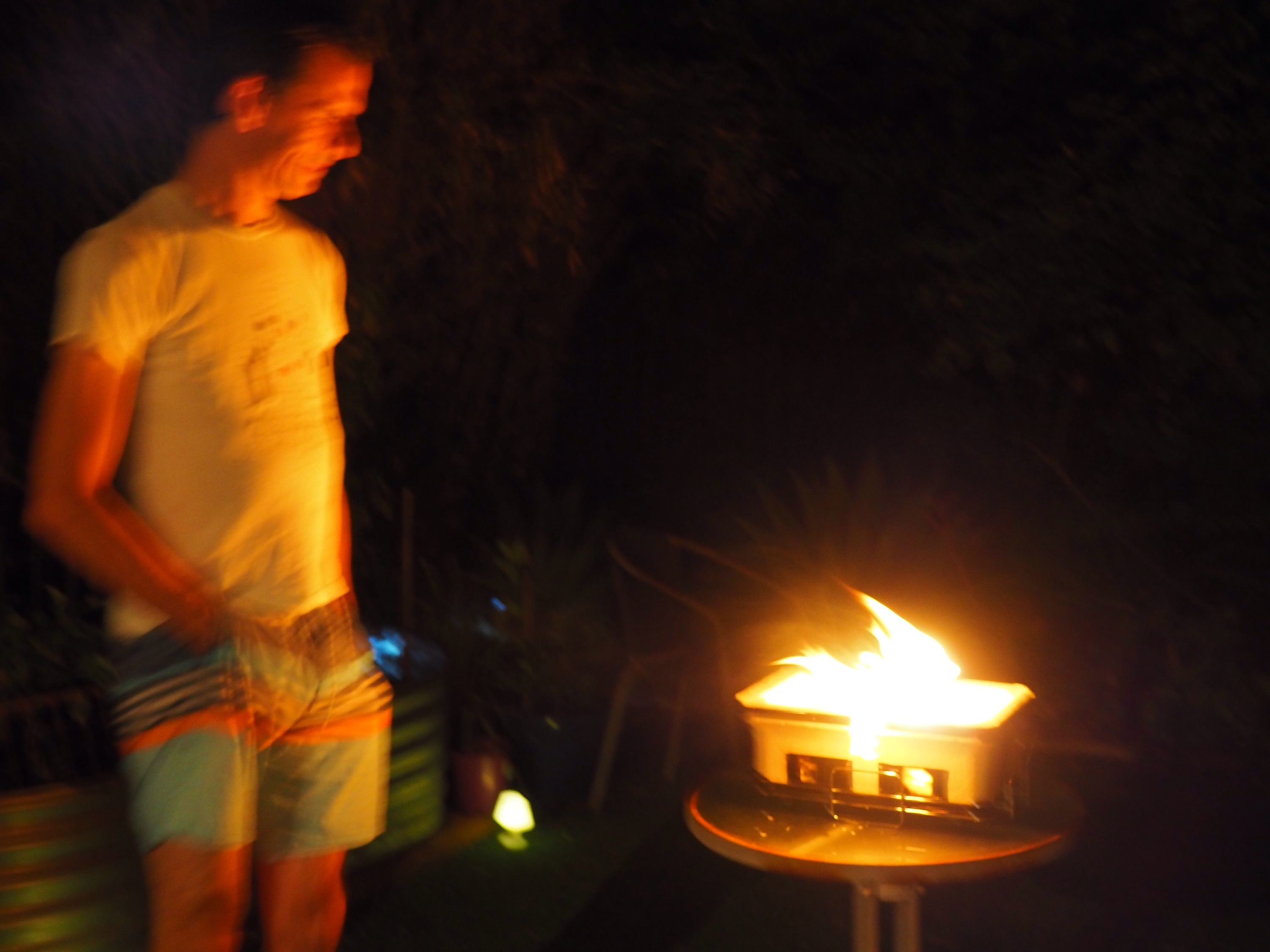 Ahh New Years Eve, traditionally the most hyped up, yet always the most disappointing night of the year. Actually, except for last year when we were in Kyoto freezing our asses off and drinking beer and eating oden and takoyaki at 2am. That was a most excellent New Years Eve….but I digress…Steve was still on the mend from his operation, so we decided a relaxed evening was in order. We visited our friends Chad and Ren briefly in the afternoon, and then popped in to a NYE party at Dee and Adem’s place. Had a couple of drinks and caught up with a few people we hadn’t seen in a while which was great. Ended up leaving their place around 8:30pm and headed home with grand plans to fire up the hibachi grill I got Steve for Christmas. In hindsight, we probably should have left this to another night, but you live and learn. Our BBQ’s in the past have always been gas, so we don’t have much experience in firing up a charcoal lit BBQ. Actually, make that no experience. None. But, really, how hard can it be? Well after about an hour of trying to get the thing to light properly (and the new addition of quite strong winds) we quickly learnt how hard it can be.