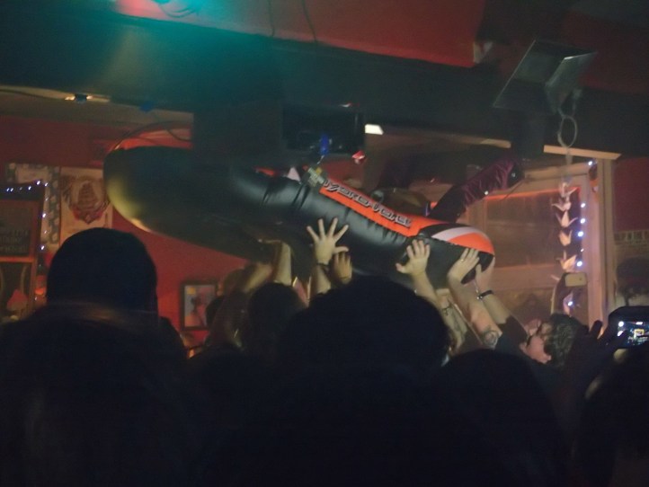 And then we headed to Mojo’s and were thoroughly entertained by Bob Log. At one point he got passed around the audience in an inflatable raft. Just magic.