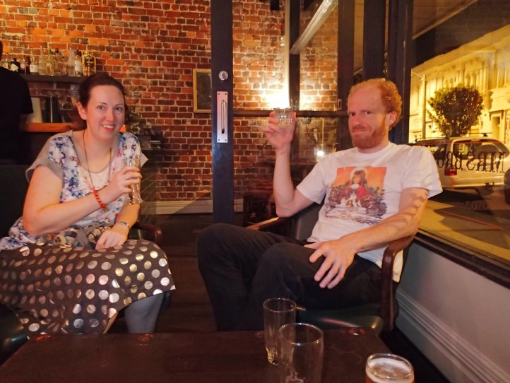 We headed off to Mojo’s with Pete and Nicole. We stopped in at Mrs. Brown for a pre Bob Log beverage.