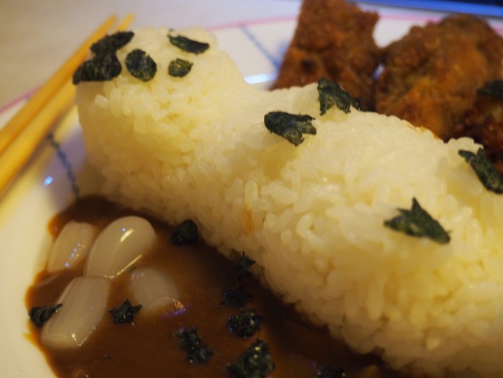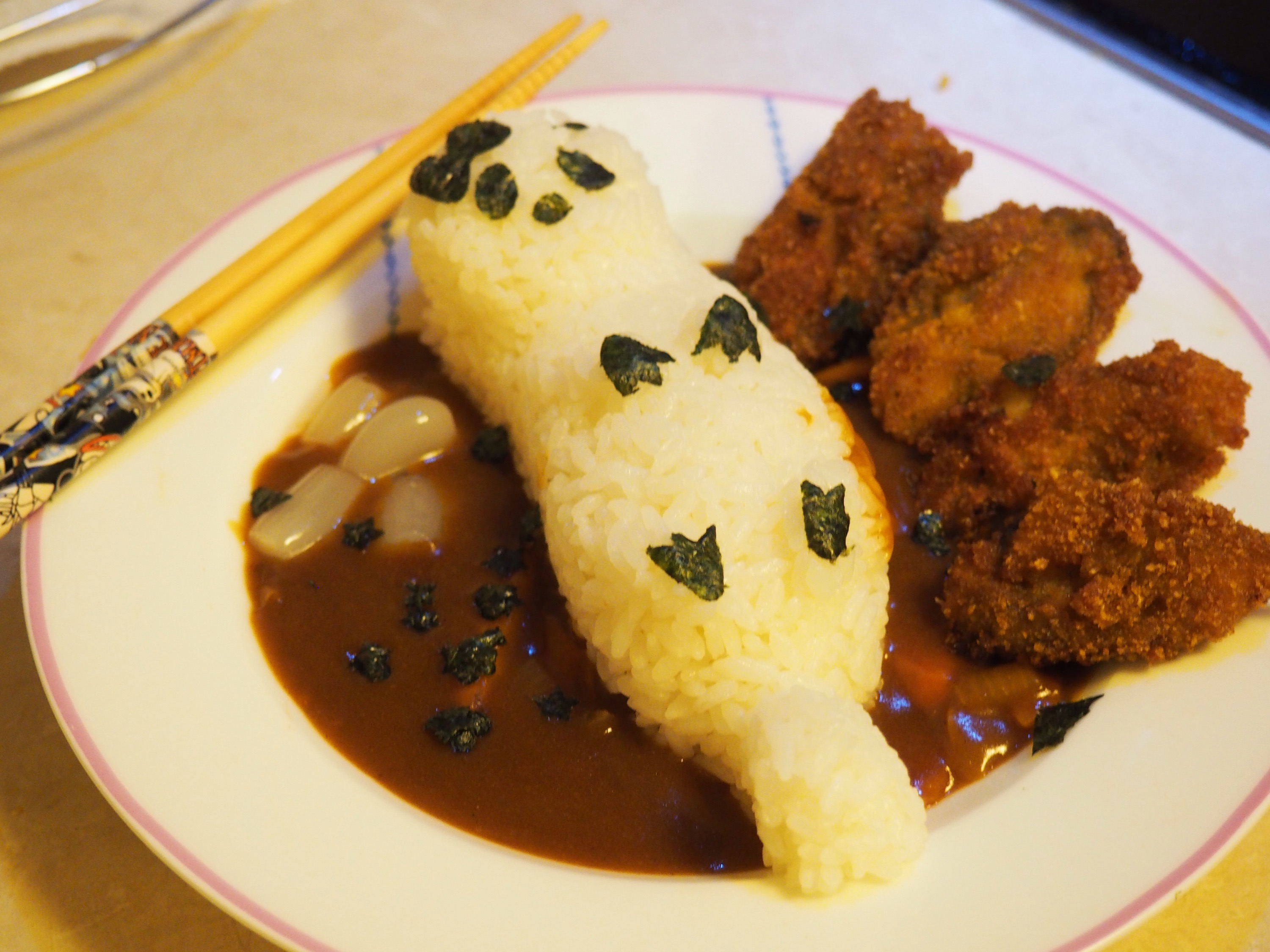I made Japanese curry with crumbed oysters. I could resist using my otter rice mould. He’s so cute 🙂