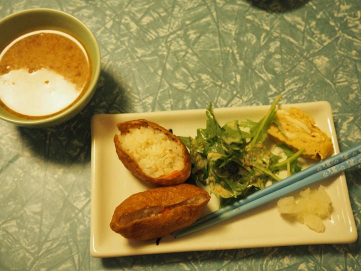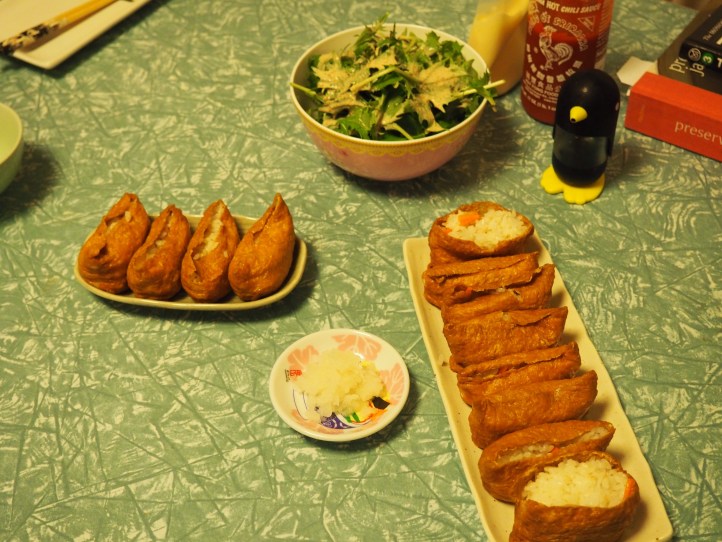I’ve had these Inari sushi pockets in the fridge for about 6 months. I thought I better use them before they are out of date. For the record Steve made the Tamagoyaki (egg roll) – not bad 🙂