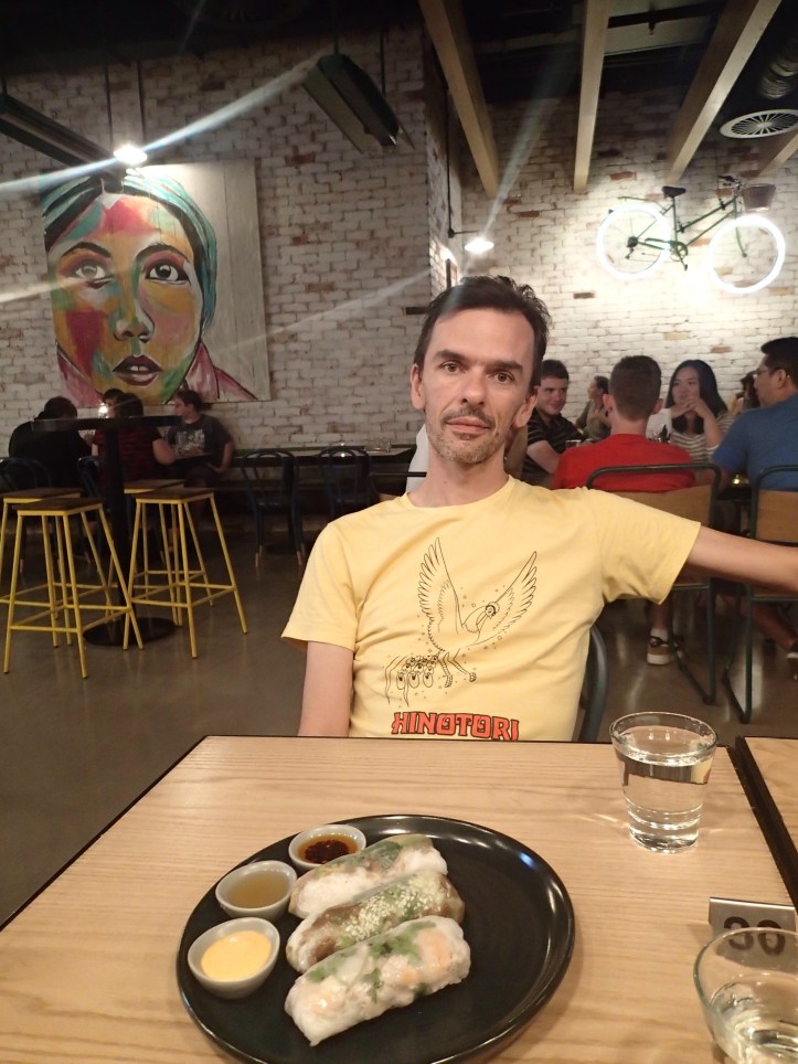 By the time it finished we were kind of desperate for dinner. Being a Saturday night, Northbridge was just on the turn to become the hideous place it becomes after dark on a weekend, so we had to get out of there. We stopped by a few places but everywhere was really busy. We decided to head in to the city. It was a bit of a ghost town in there. We headed towards 140 William because it was the only place we could think of that would be open. After some deliberation we decided to try the new Vietnamese place there, mainly because it wasn’t crazy busy like everywhere else. We had some rice paper rolls and Banh Mi. It was ok, but nothing special.