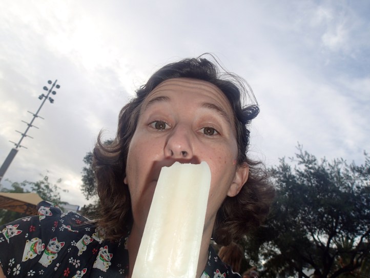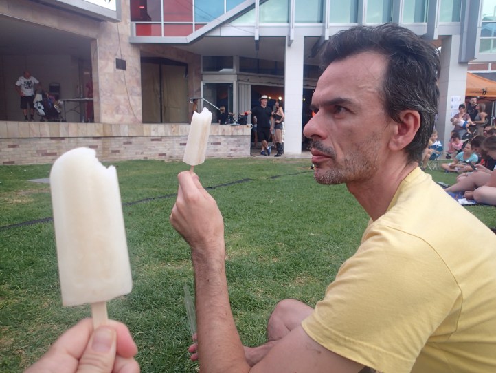 Then we headed over to the Northbridge Piazza to find a spot on the grass in front of the screen. It was really packed and we had to sit up the front. We had ginger beer icy poles.