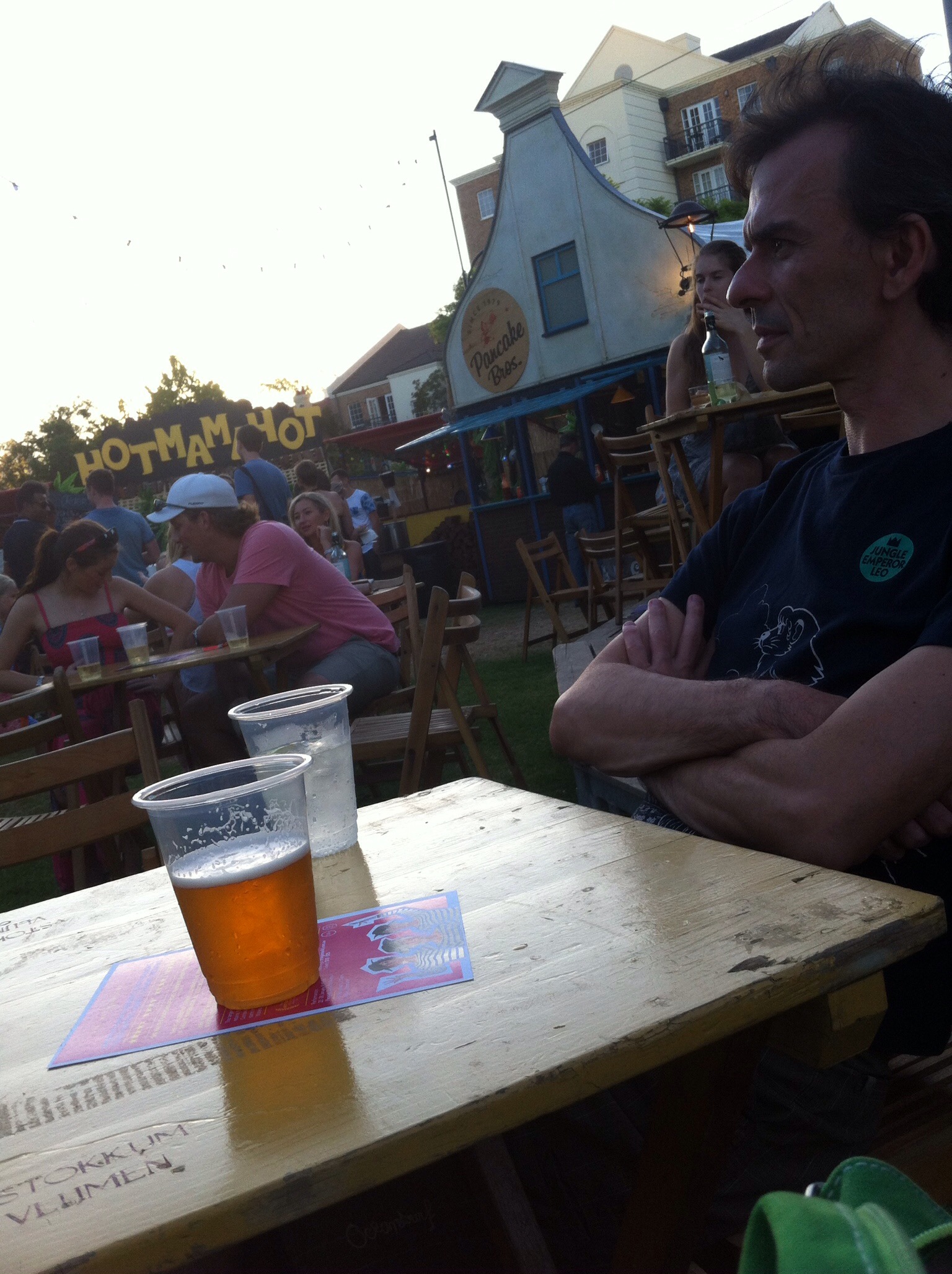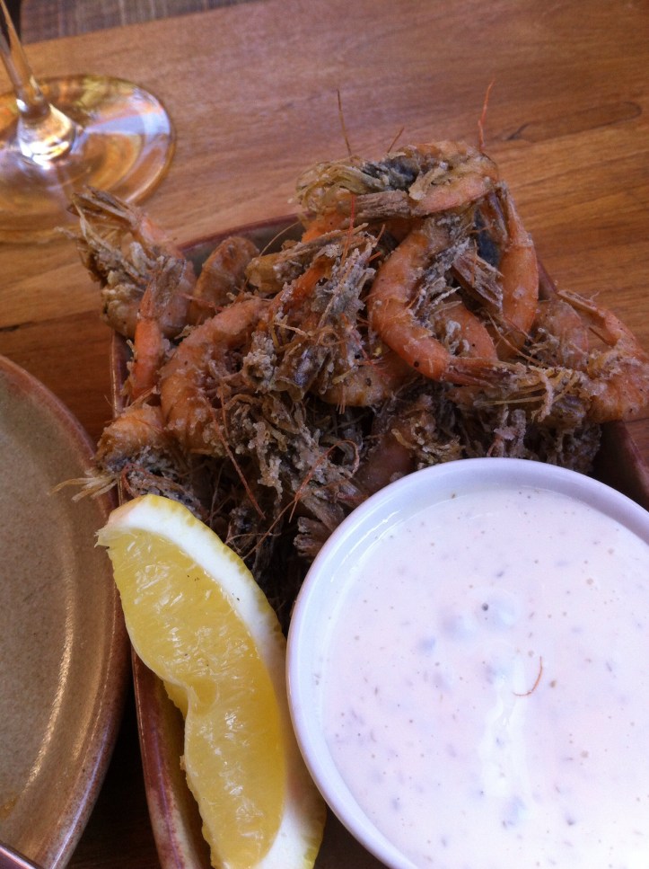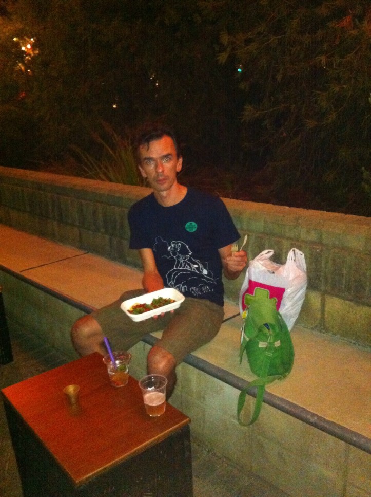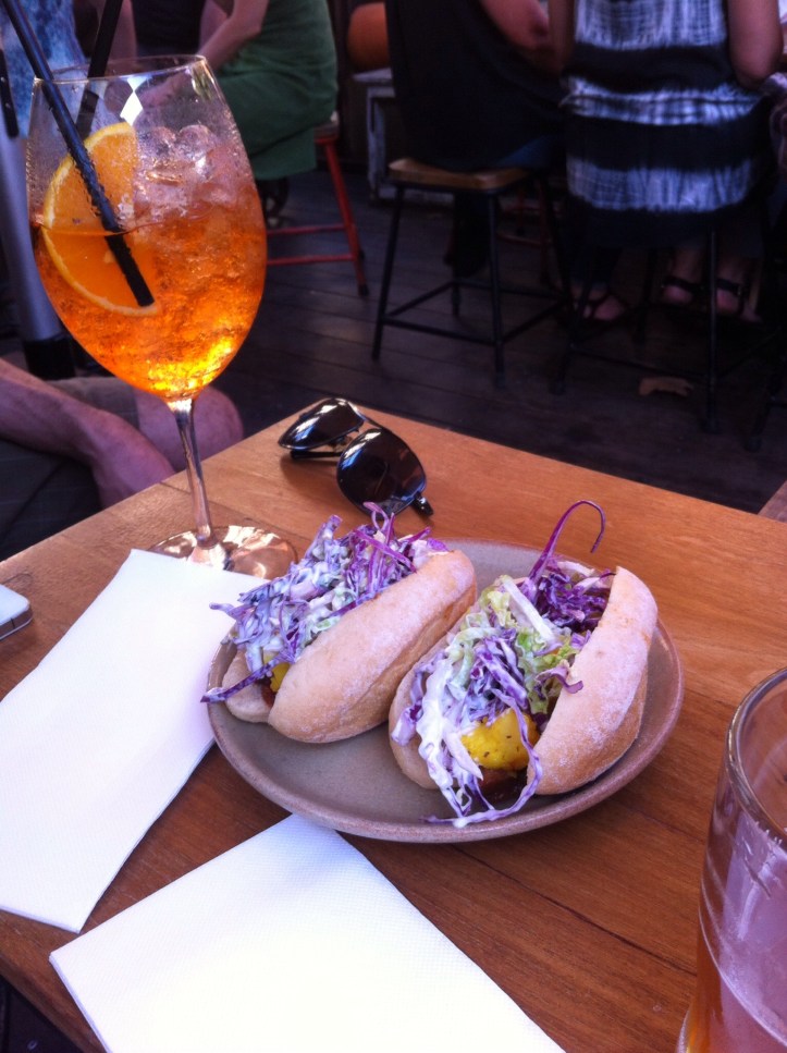 It was a lovely sunny afternoon, perfect for sitting around and enjoying a few drinks. After a while we started to get hungry. We weren’t too inspired by the food on offer at the Urban Orchard, so we decided to head over to Lot 20. I had a beer and Steve had a girlie Aperol Spritz. We ate Smoked Brisket rolls and crispy river school prawns.