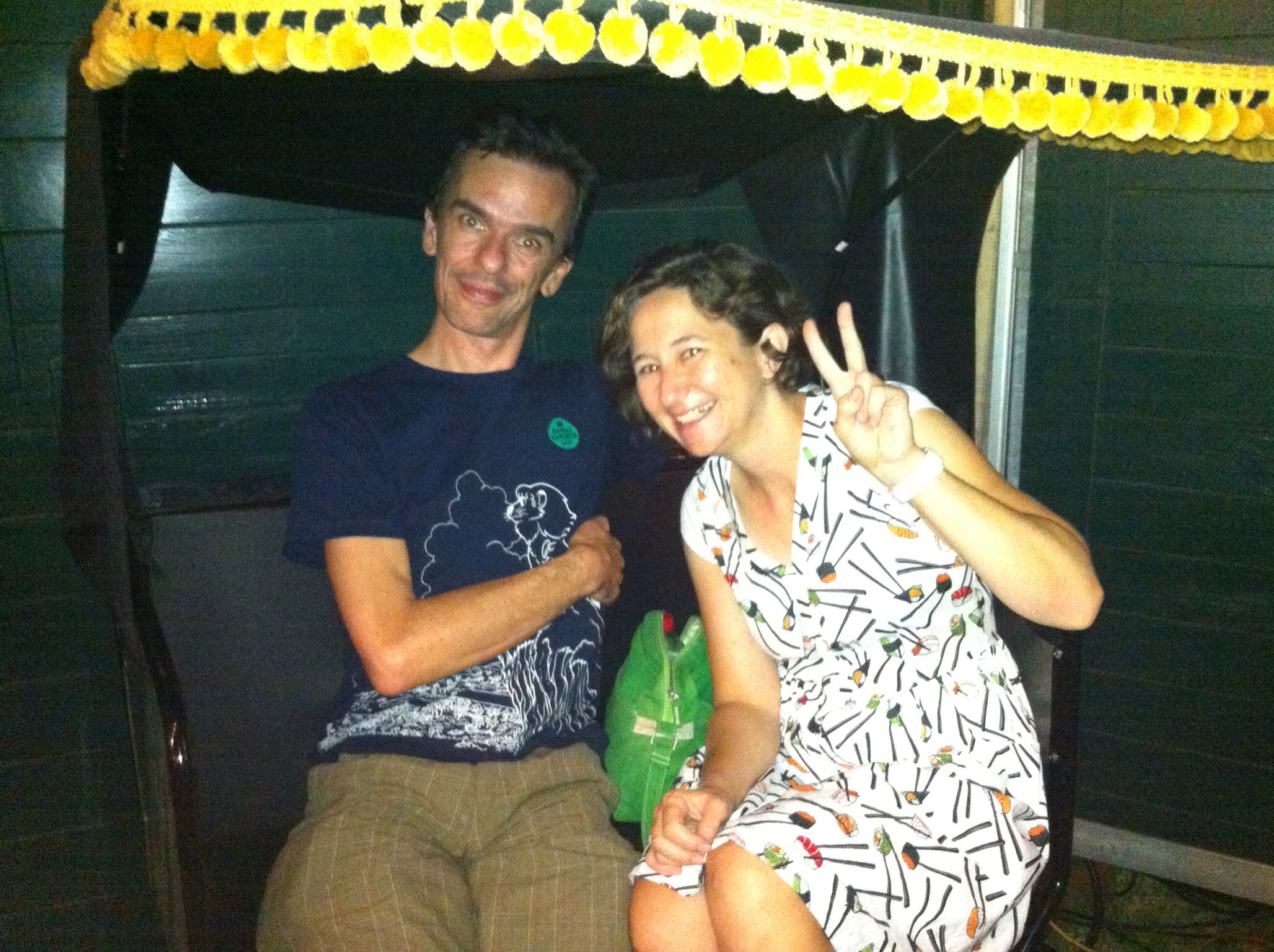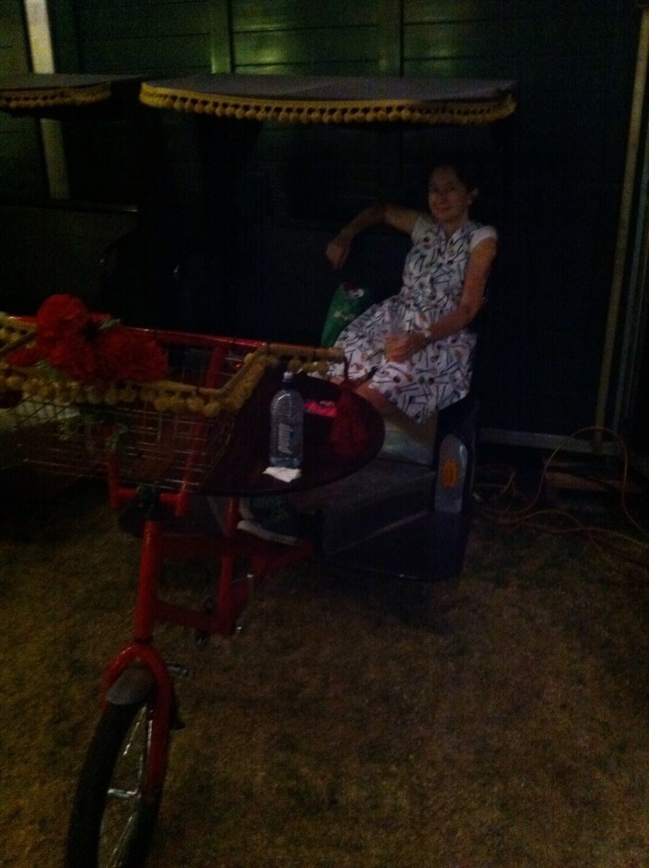 We ended up at another bar behind the museum. We sat in this weird rickshaw type thing. We made friends with a lady and her husband who were sitting next to us, and chatted for quite a while.