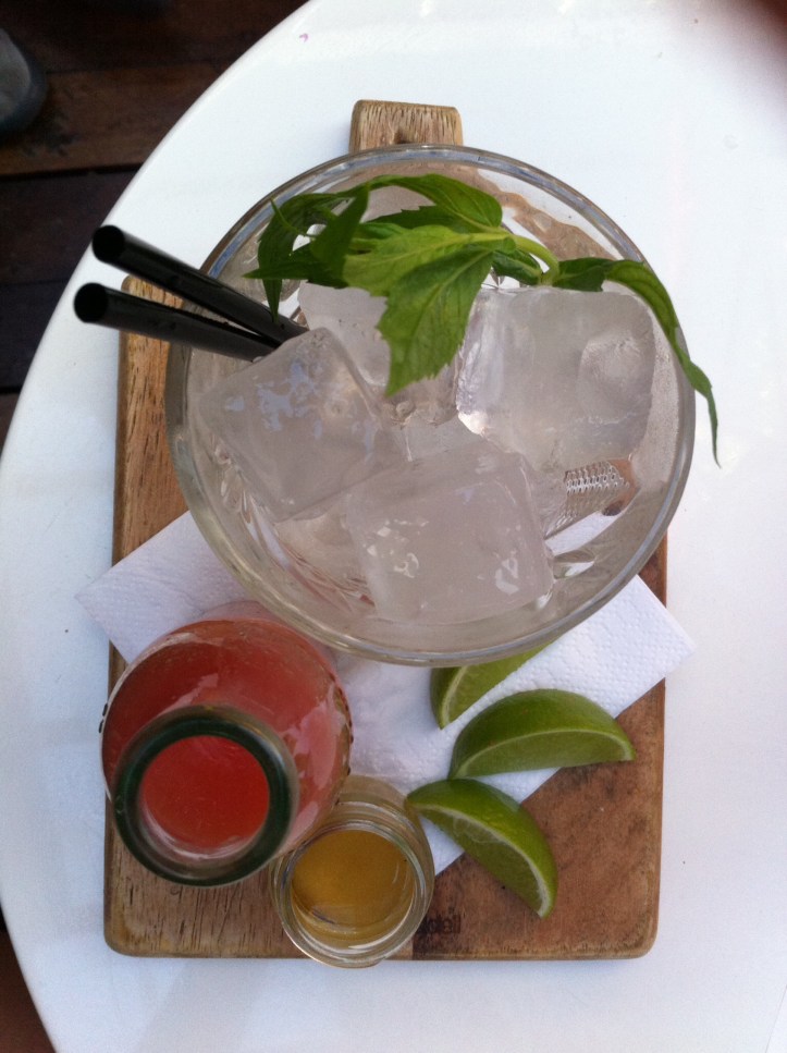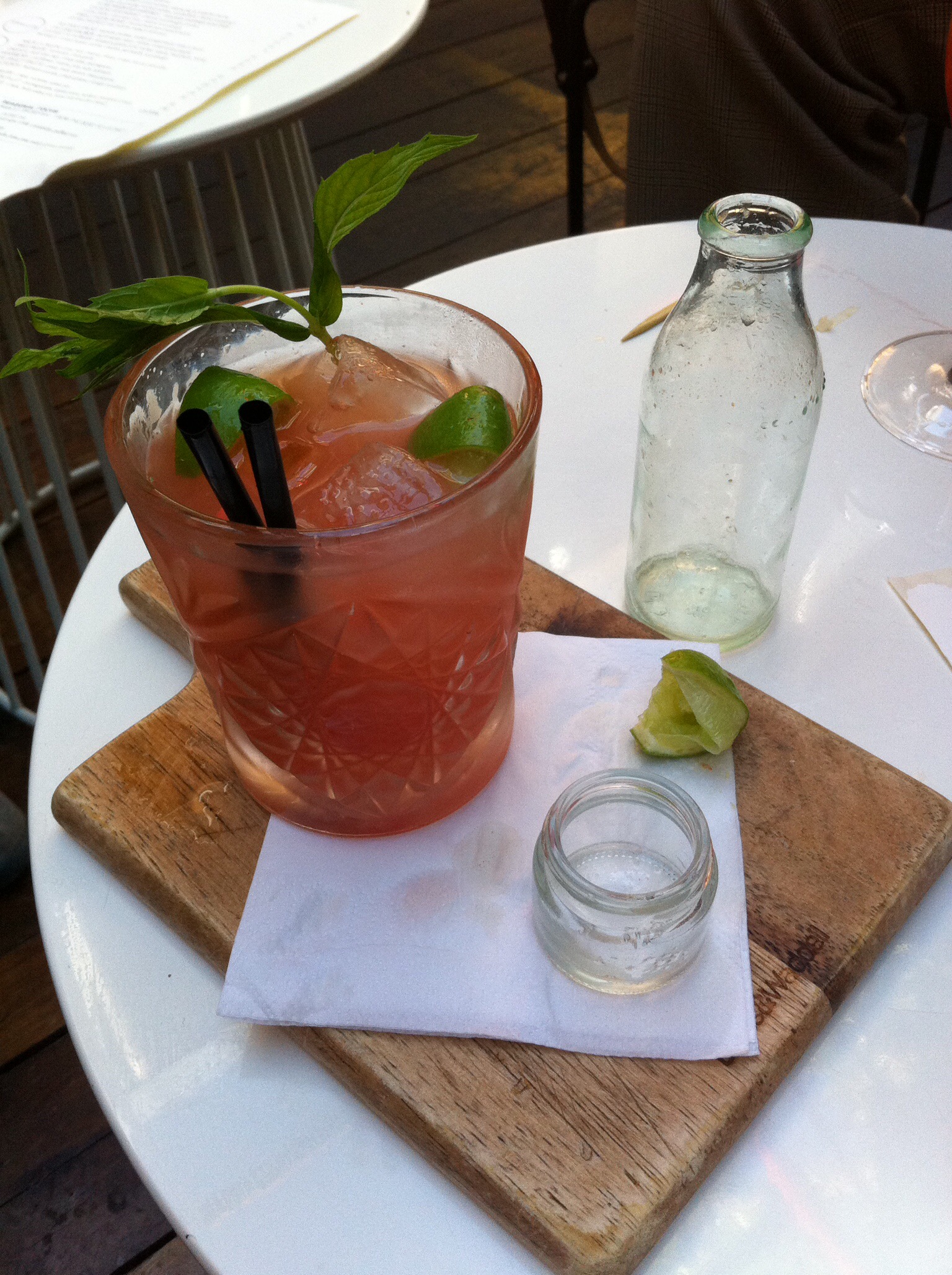 We decided fruity cocktails were in order. Pete had some sort of Aperol Spritz. Steve and I had a rum and grapefruit concoction. It was presented very fancilly.