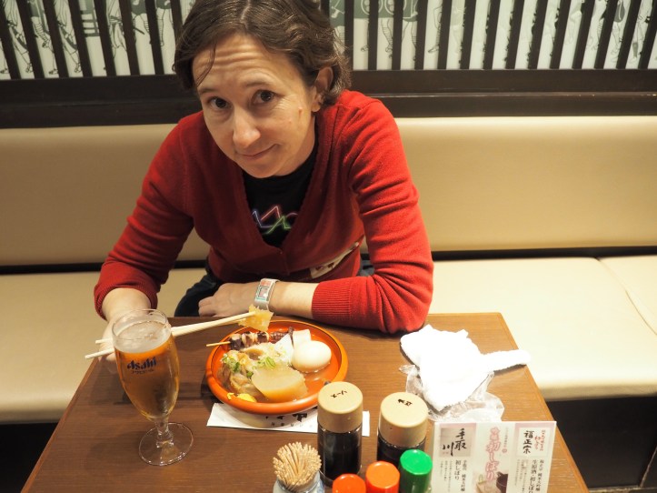 Oden for dinner at a place at Kanazawa Train station. We had to decipher the Japanese menu.