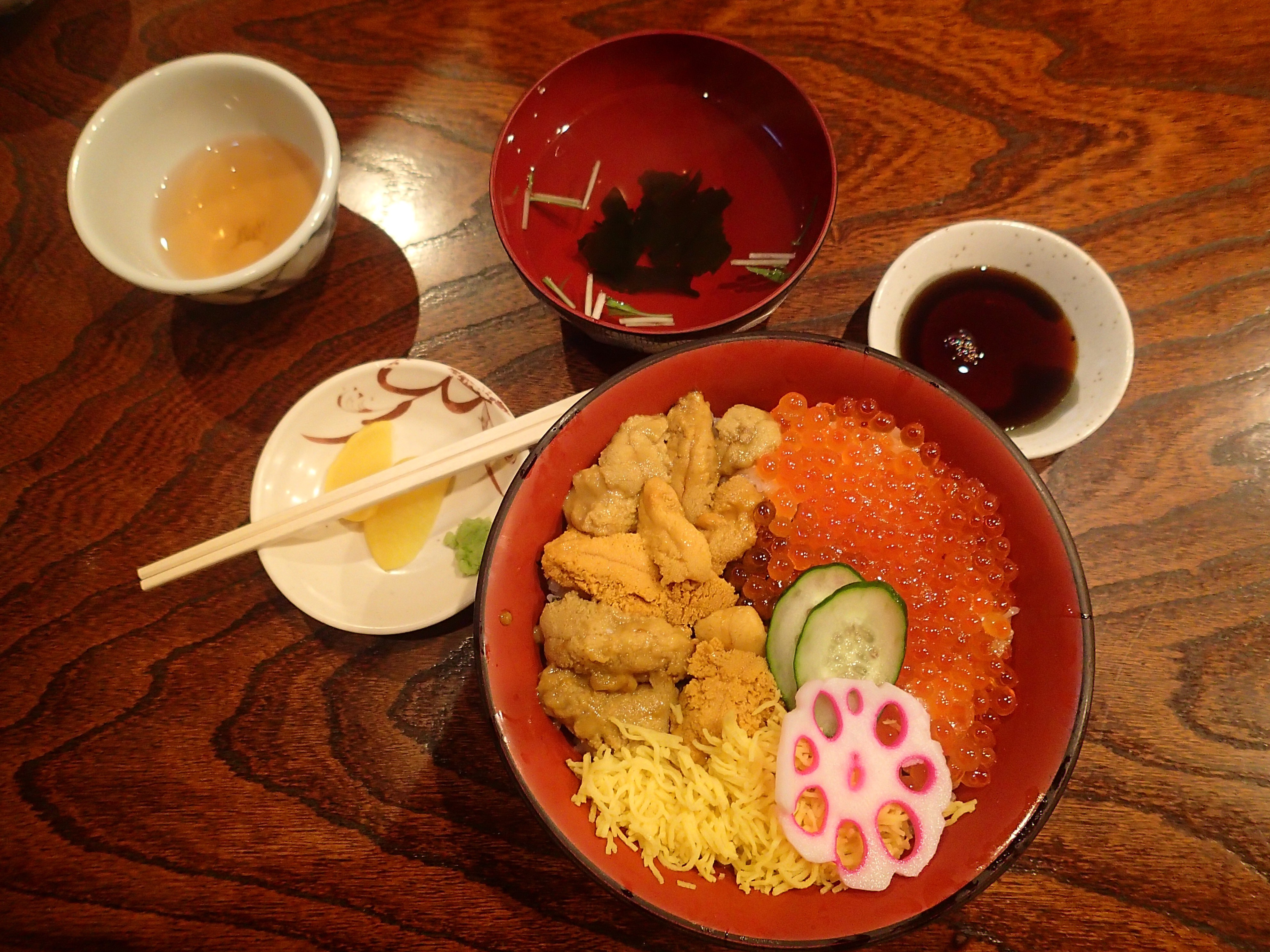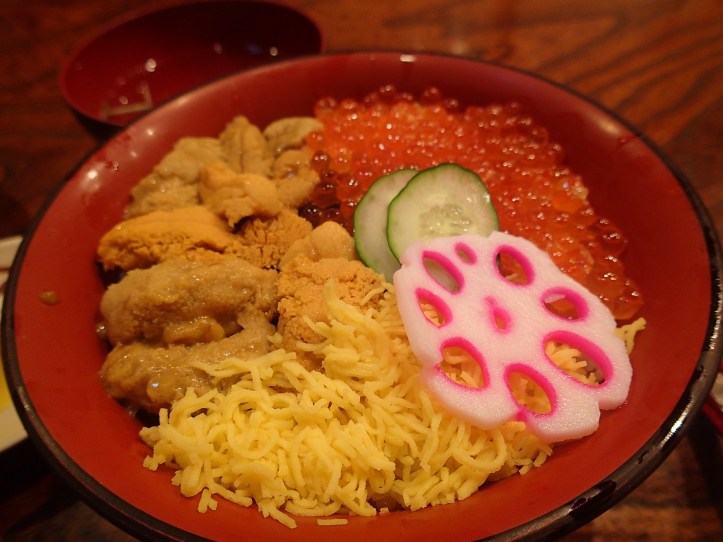 Lunch in Kanazawa at Omi-cho Markets. Ikura and Uni Donburi.