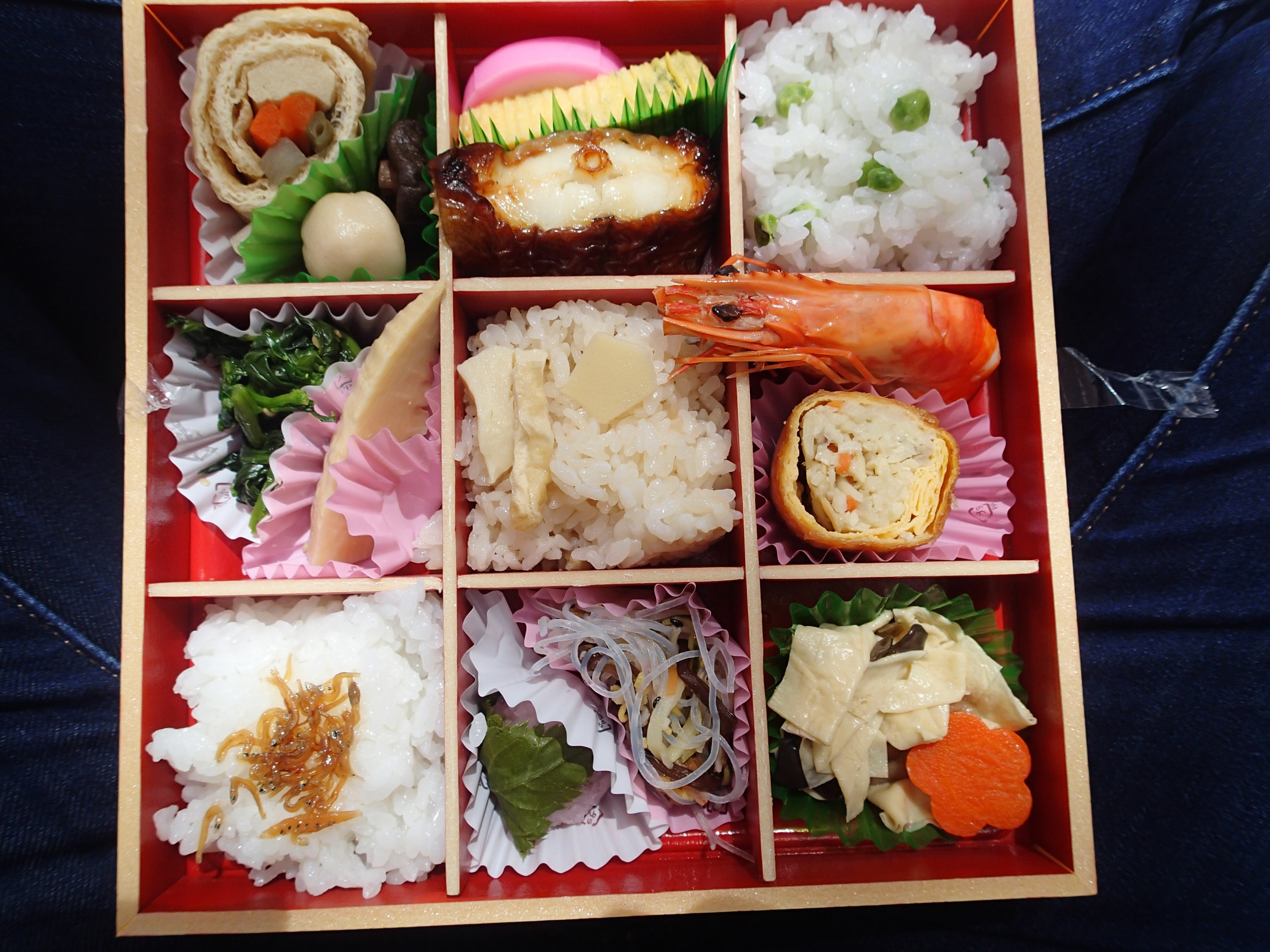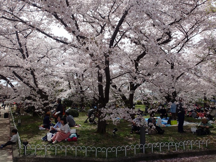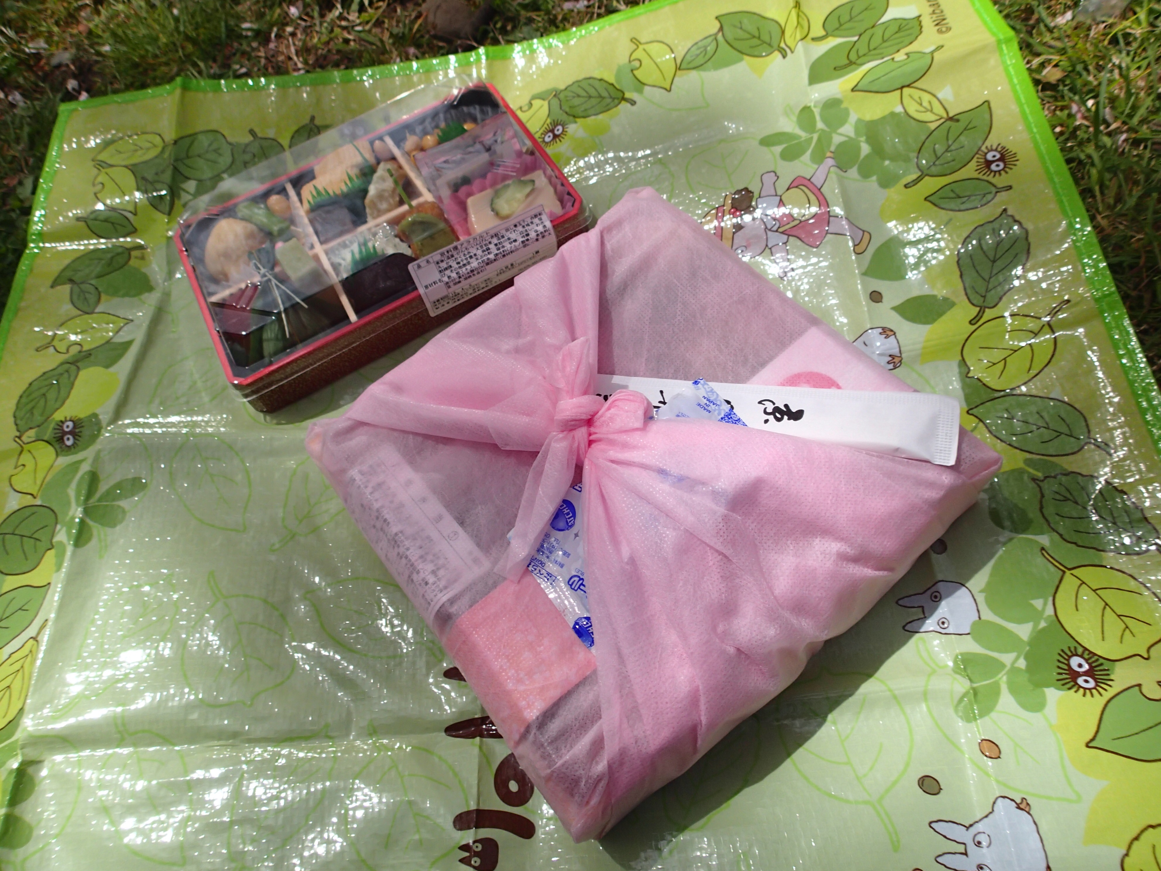 Then we bought bento and went in search of Sakura at the Botanical Gardens. We ate our bento under the Sakura with every one else. My bento contained seafood.