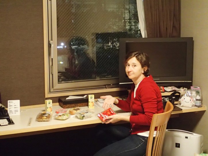 By the time we got to Hiroshima, I was started to feel a little like the cold that had been hanging around for the last week or so was coming back. So we taxi’ed it to our accomodation, then nipped out briefly to pick up some things from the supermarket for dinner, which we then ate back in our hotel room.