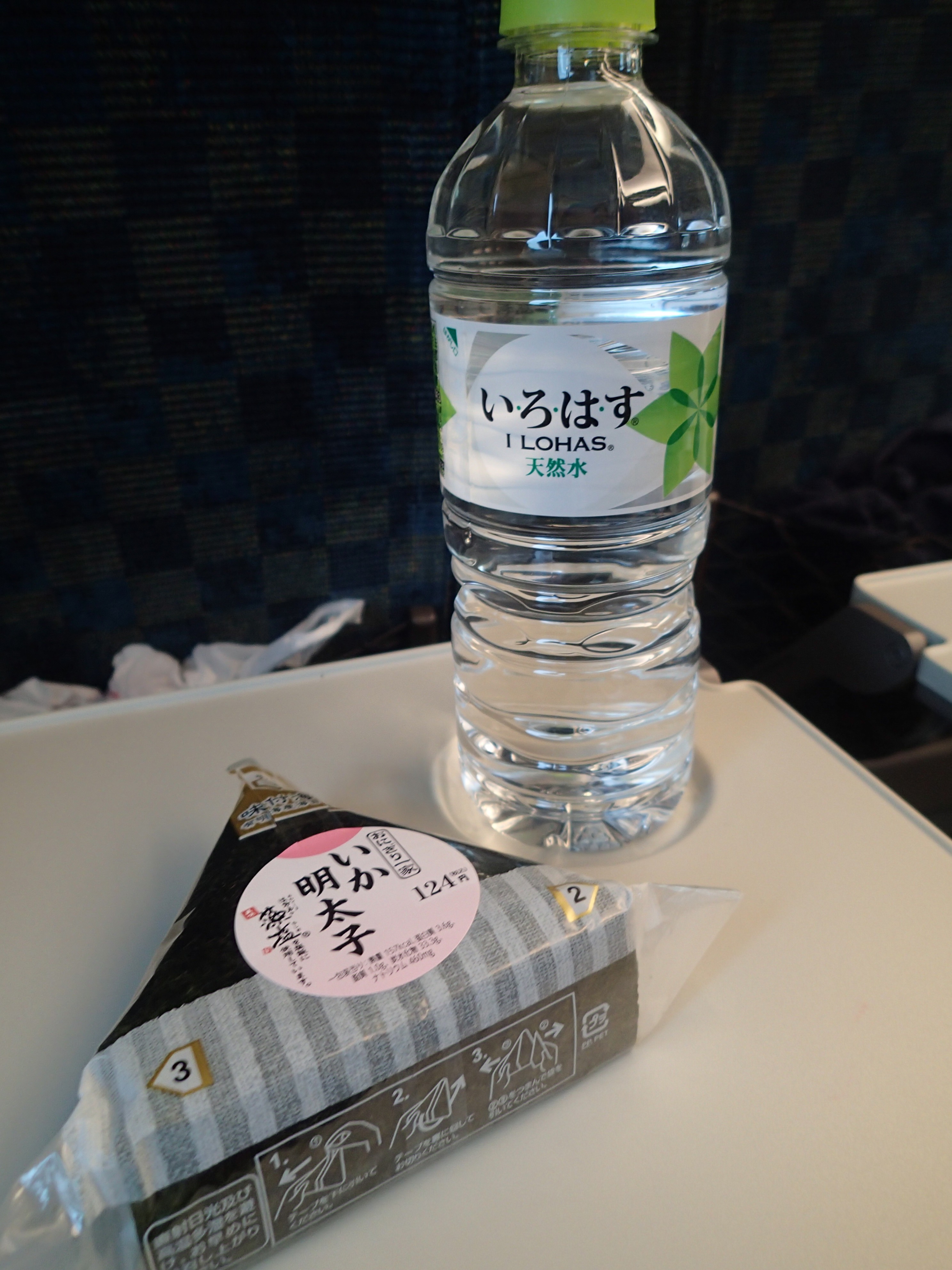 After we said goodbye to them, we jumped on the next Shinkansen bound for Hiroshima. We had an onigiri snack on the train.