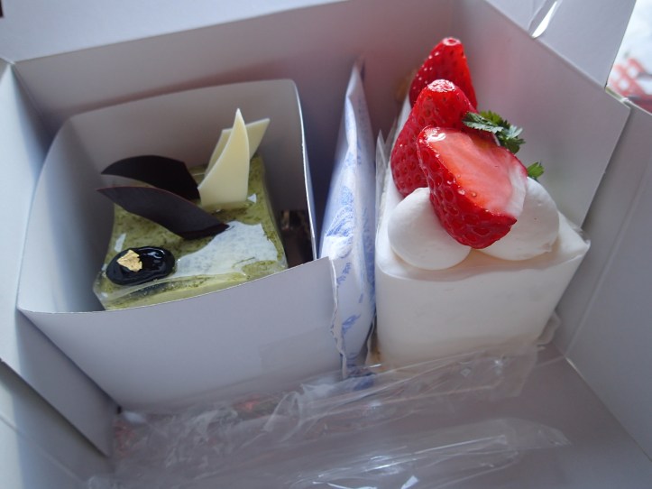 Then we headed back to the hotel for a bit of a rest. But I was determined to have cake, because, it was my birthday after all. So we picked up two small cakes from Sogo Department store and ate them back at the hotel with a coffee. I love the way department stores wrap up cakes so meticulously. They even pack little ice packs in the boxes.