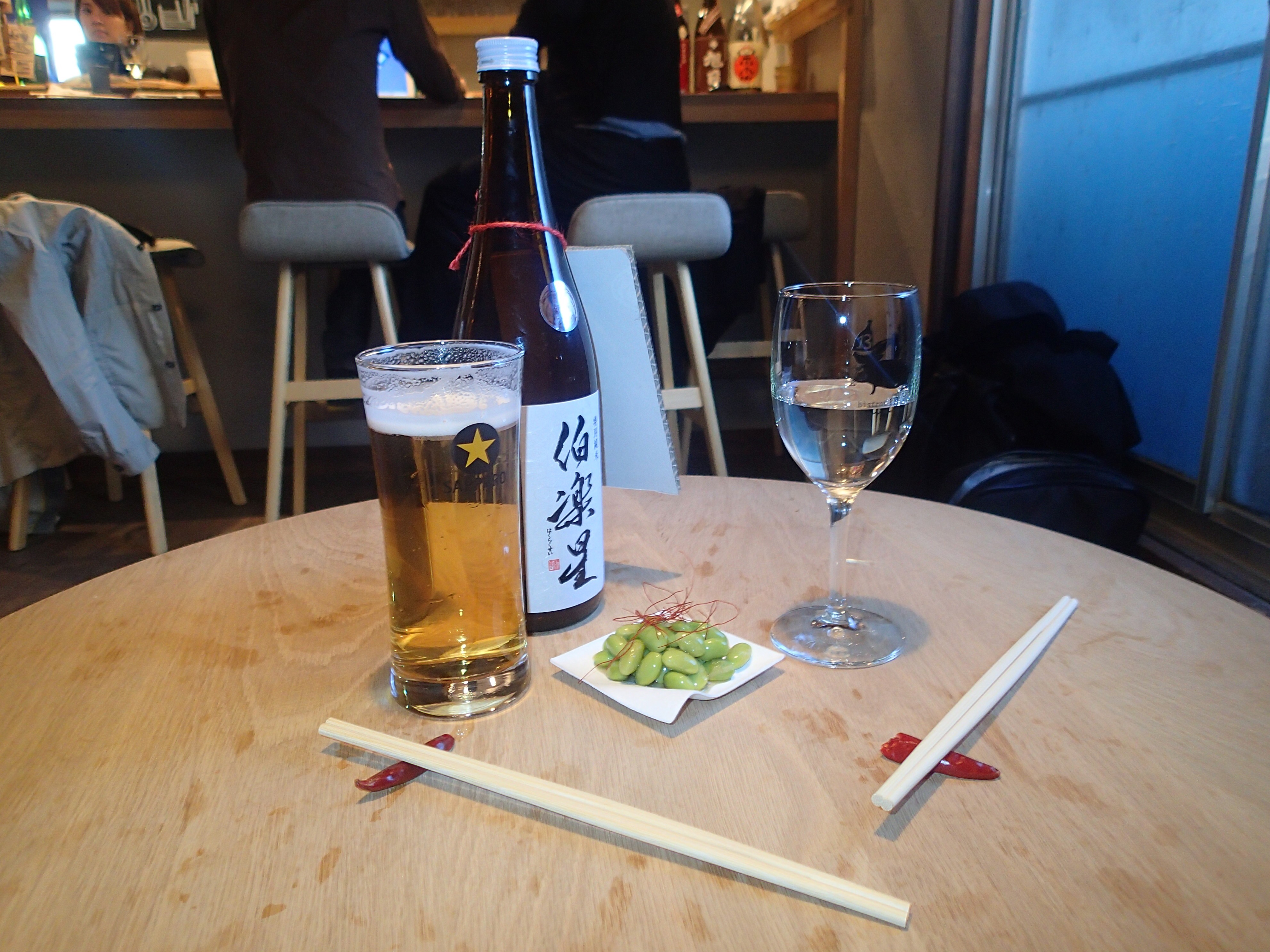 Later, beer, sake and edamame at Urasando Garden. It was way cool there. There is a stationary shop there where you can make your own notebook – you choose the paper you want for the cover, inside and the binding etc etc Don’t I didn’t get one, because I did.