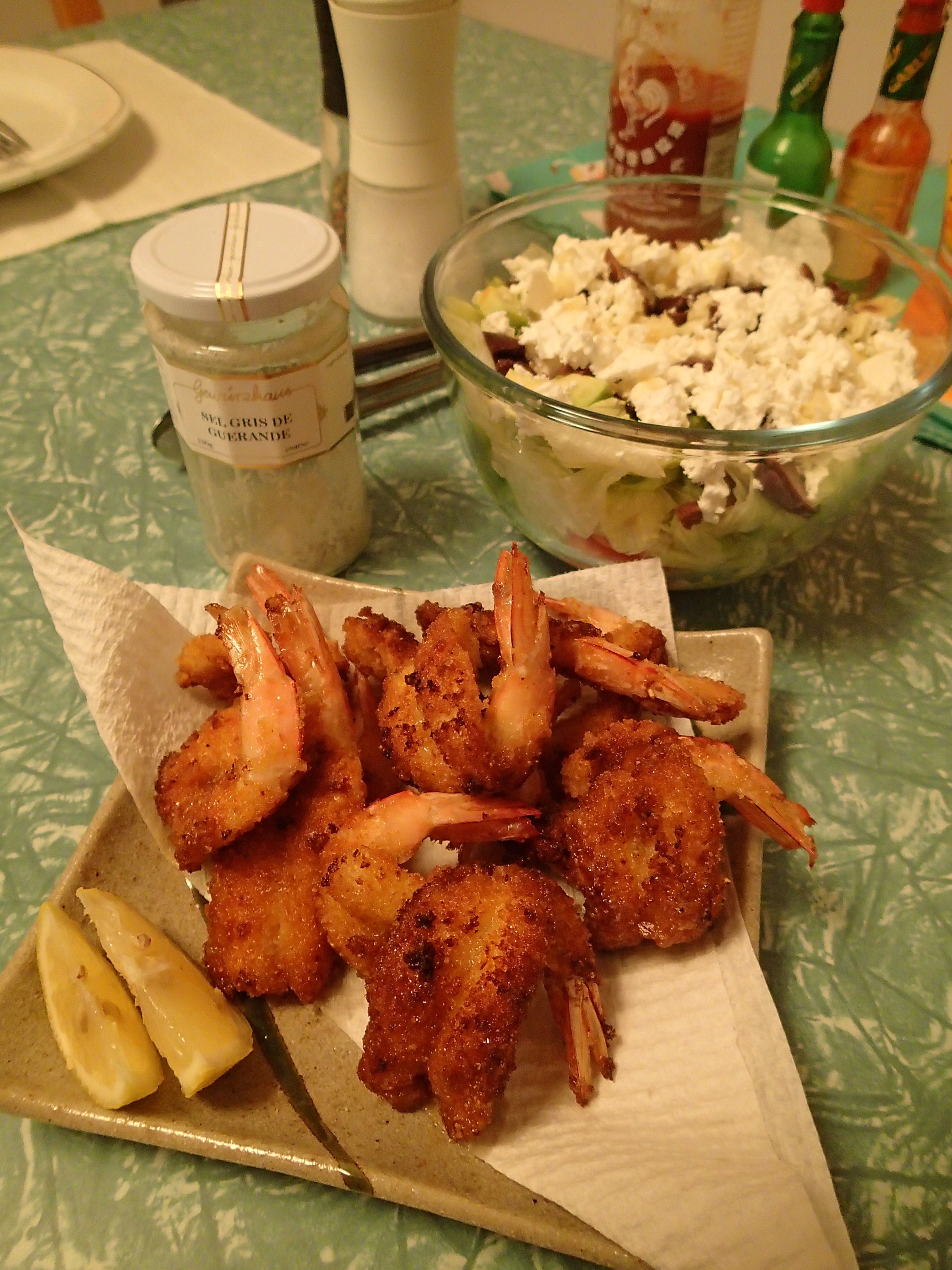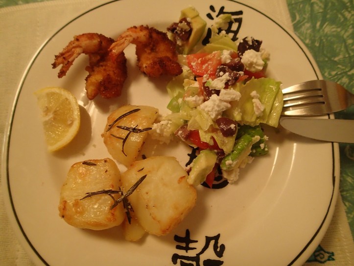 The next day I made some prawn cutlet type things with salad and potatoes.