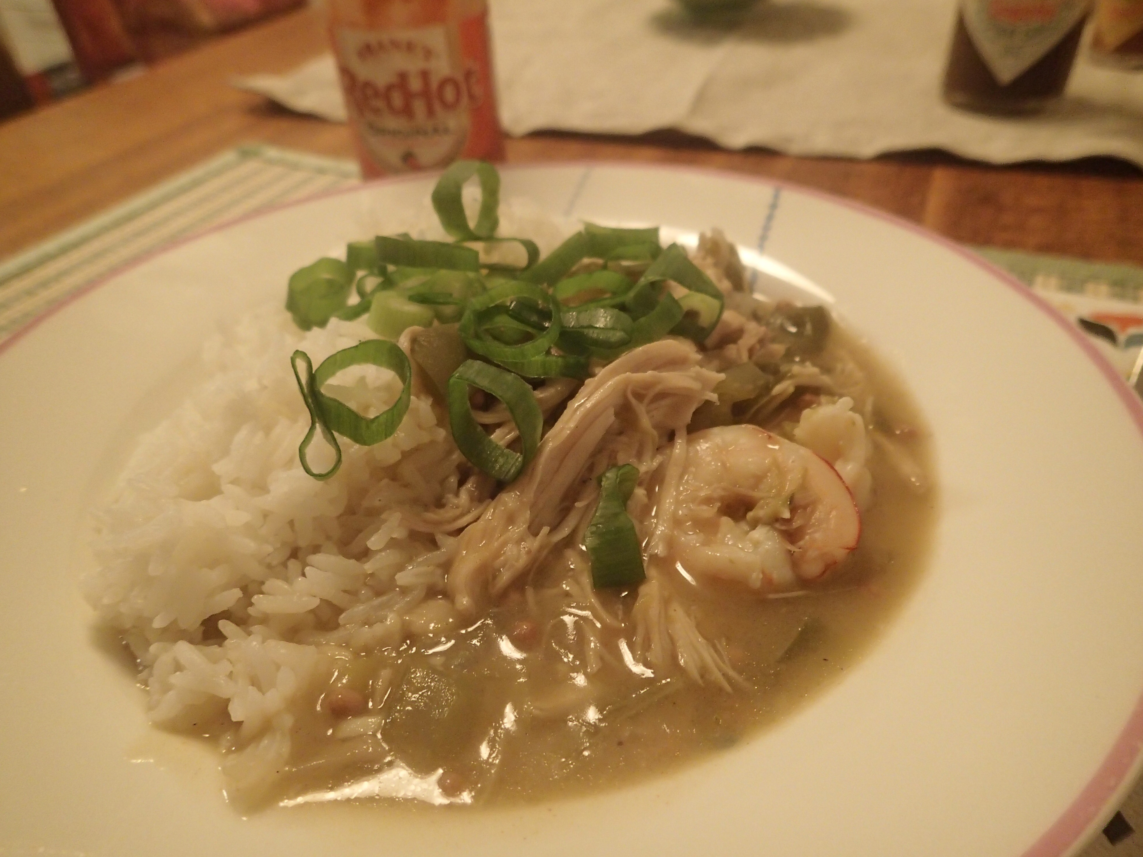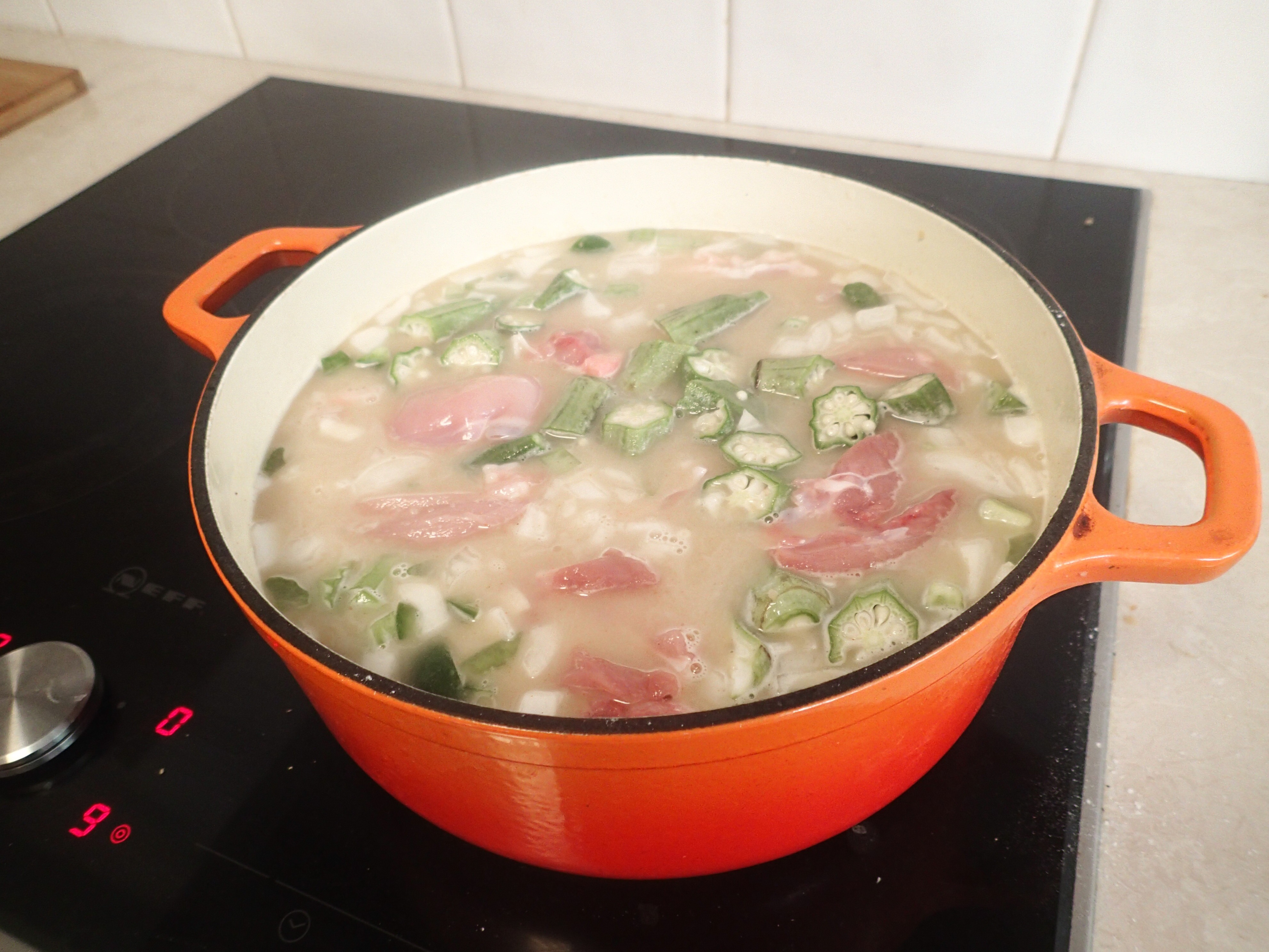 The batter was really light and fluffy – almost soufflé like. The cake went in to the oven and whilst it was baking we had our gumbo dinner. Super delicious.