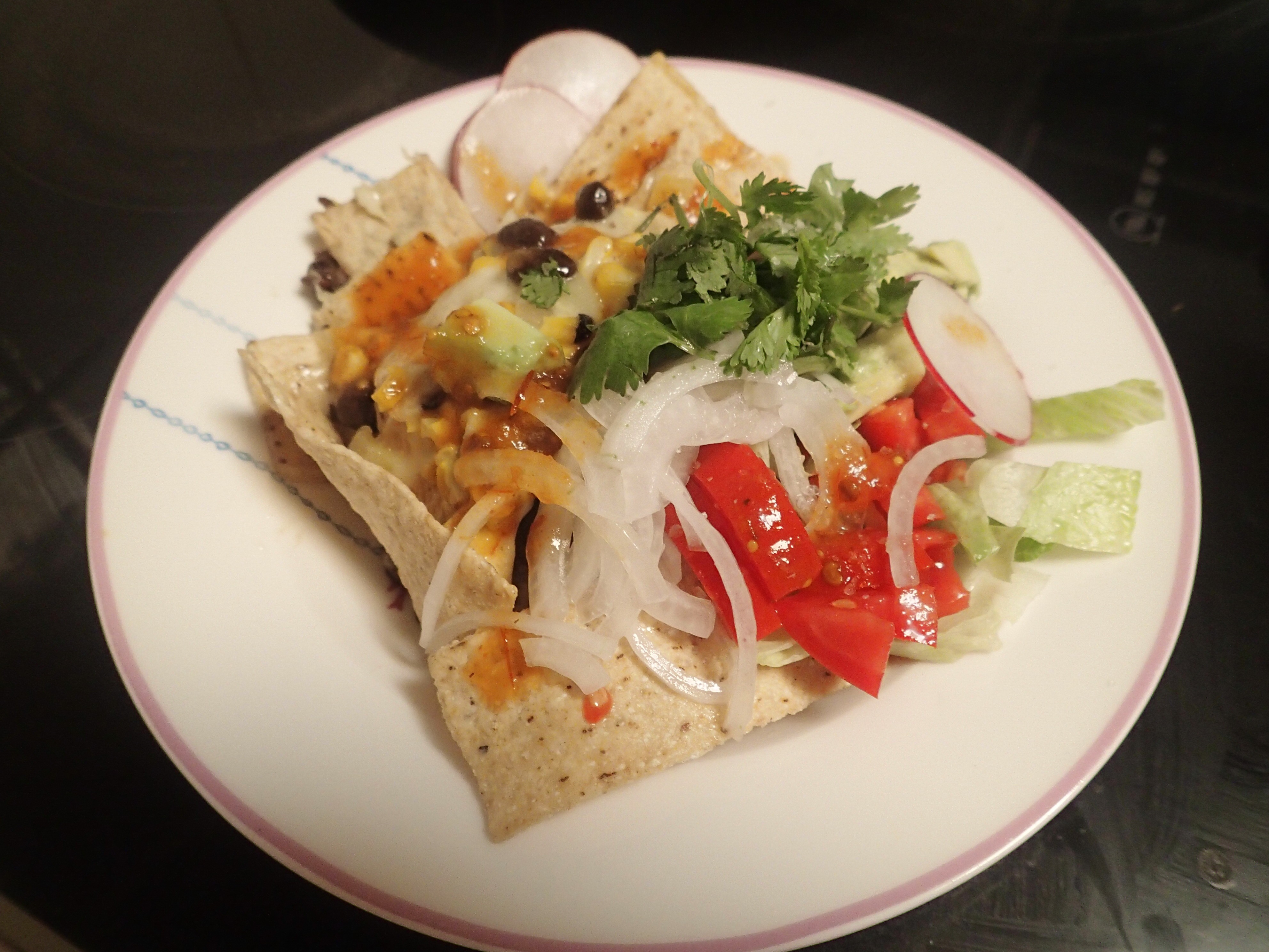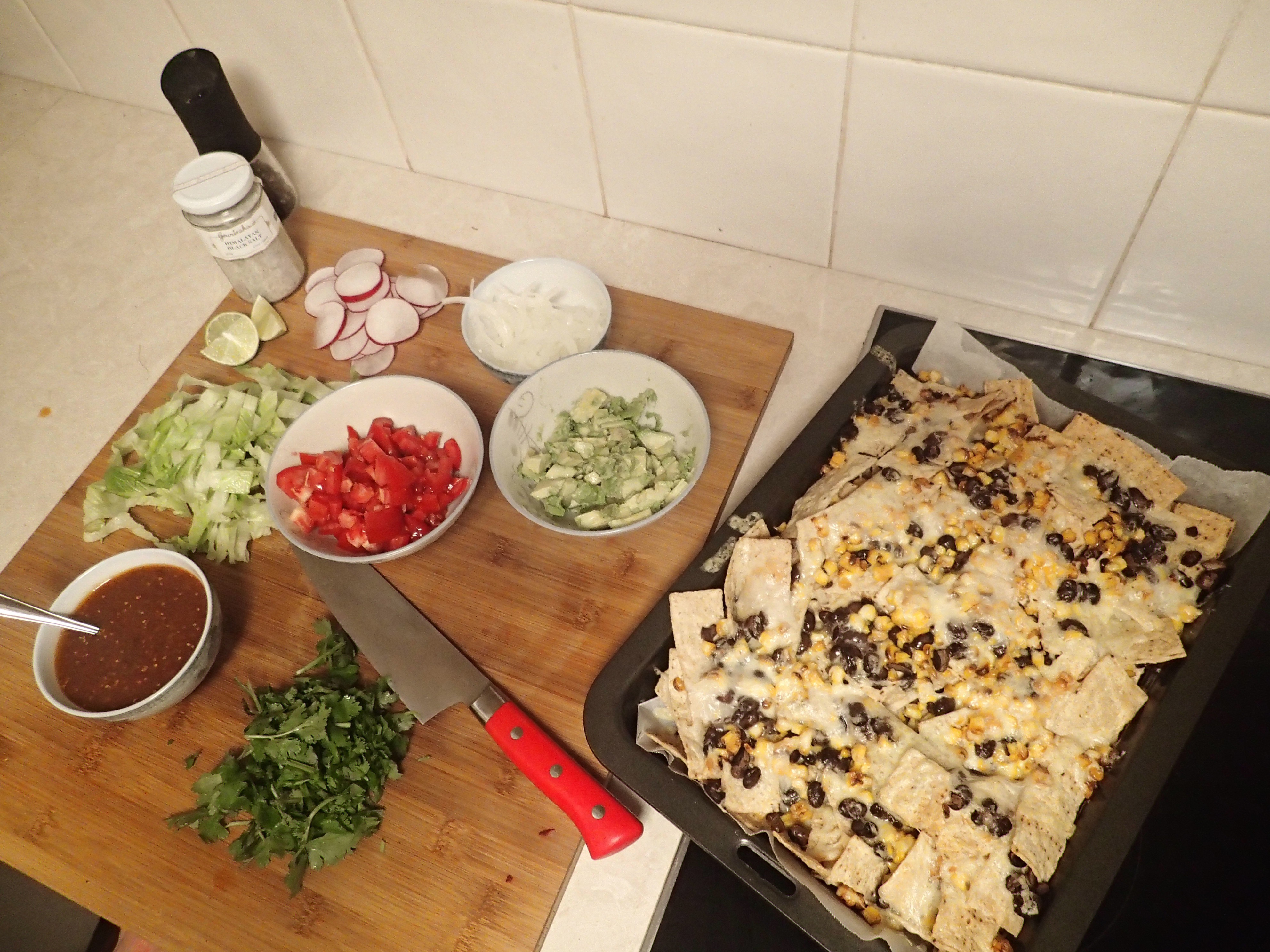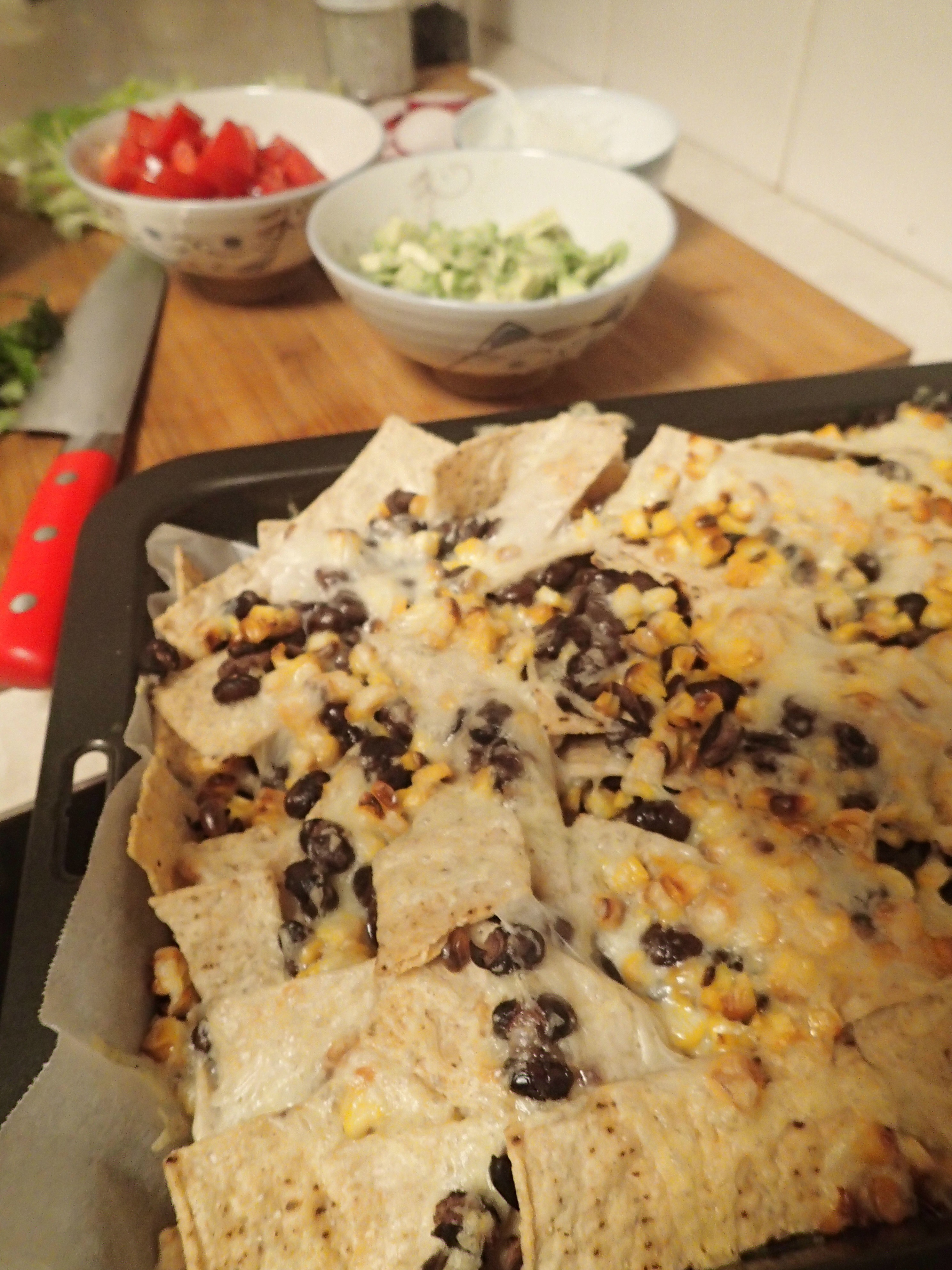 Nachos. It’s not really food is it? I mean, it’s just corn chips. That, in my mind anyway, doesn’t really equate to being dinner. But….I saw this recipe for Corn and Black Bean Nachos, and I thought that just for something different, I would give it a go. I made up some salsas too and it was actually all really delicious, but it’s not really something I could eat all that regularly.