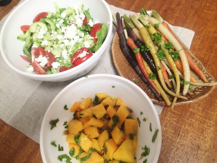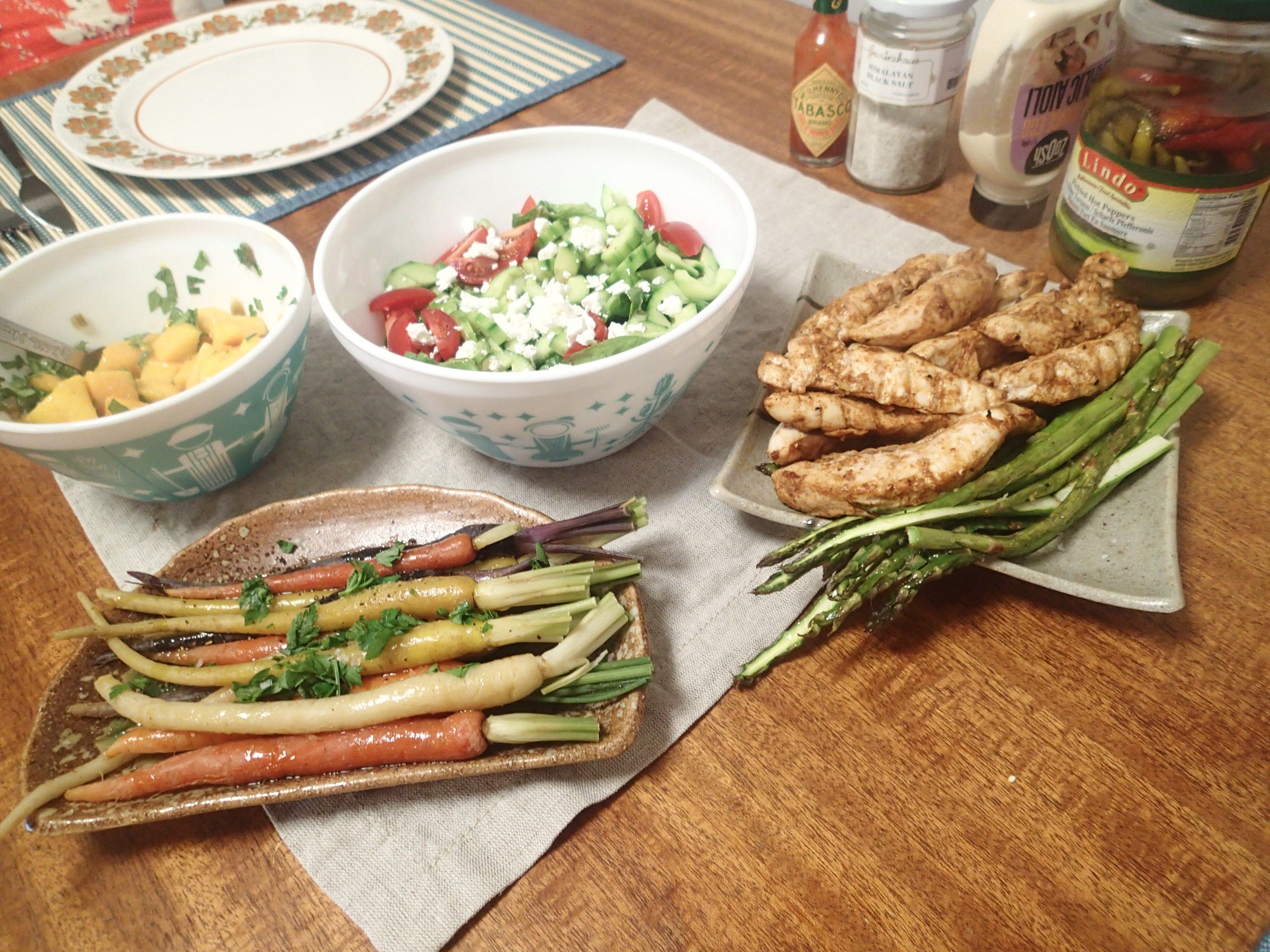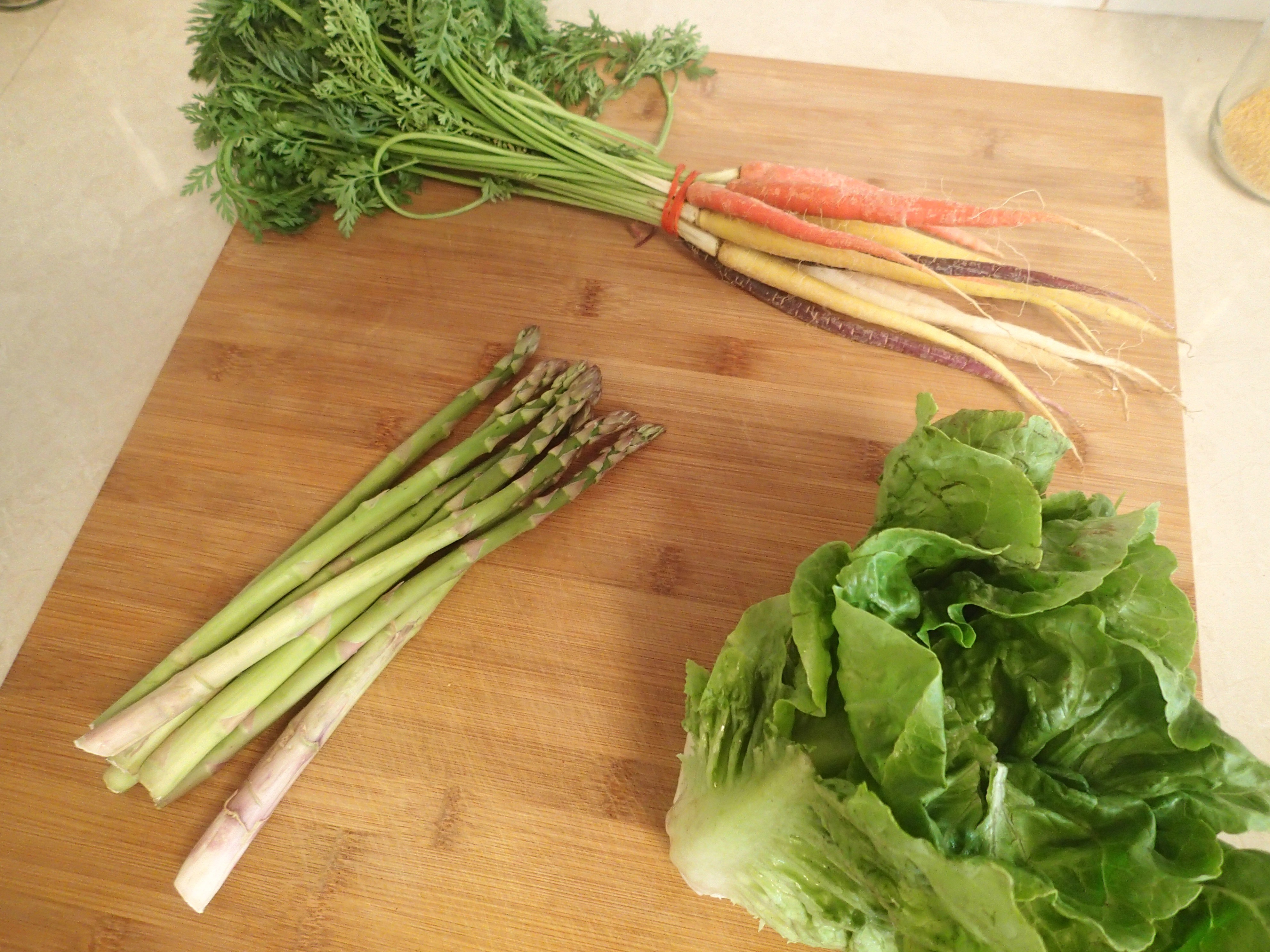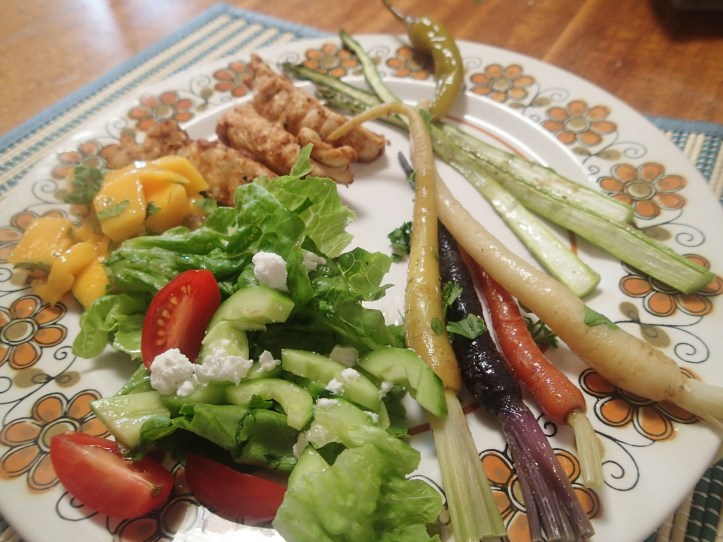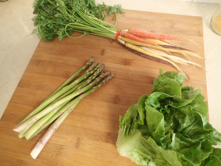 I used the Heirloom carrots for dinner, as well as some asparagus (which I grilled) and made a salad and grilled some chicken (that I had marinated in lemon, olive oil, garlic, chilli and paprika)