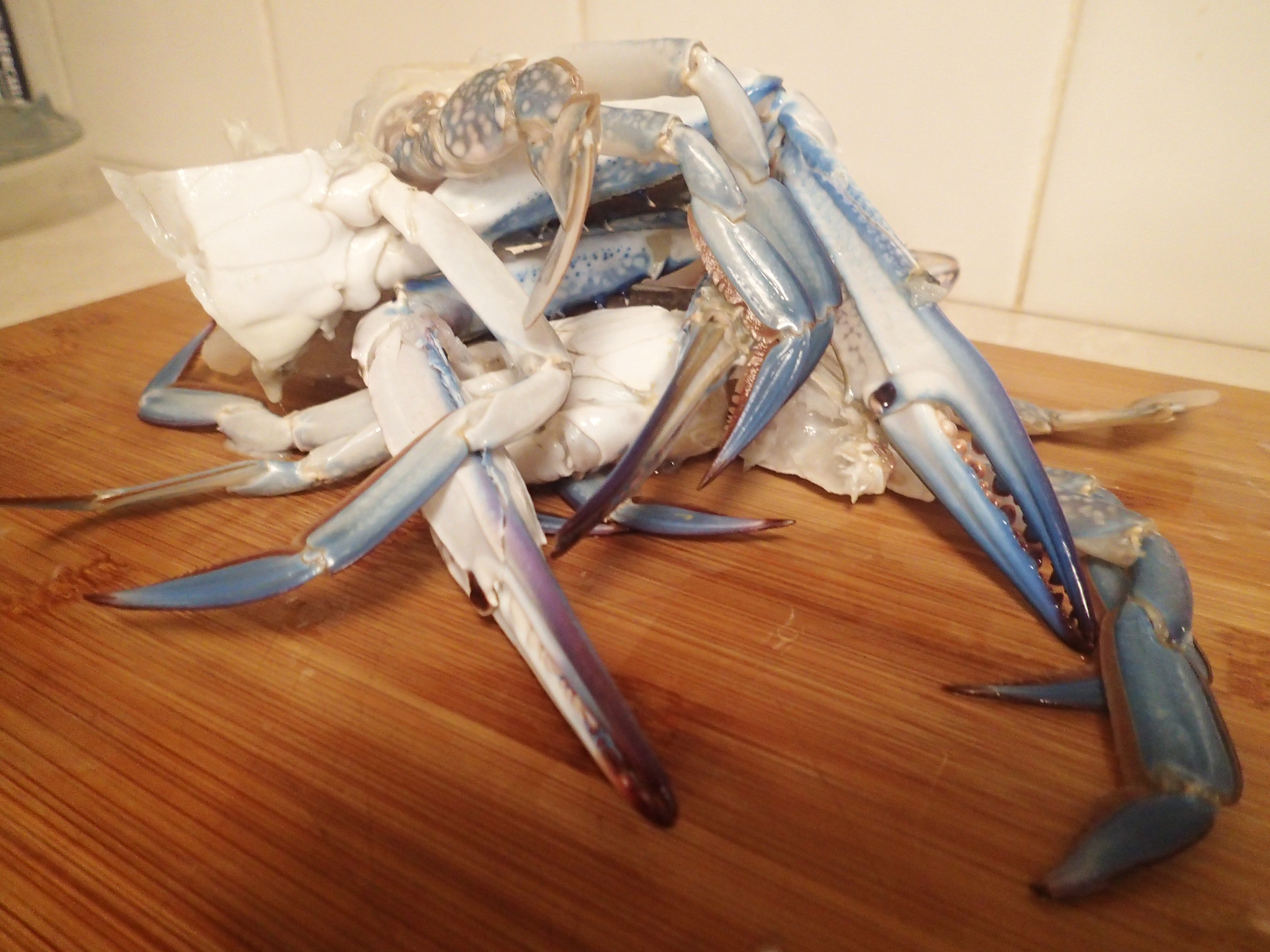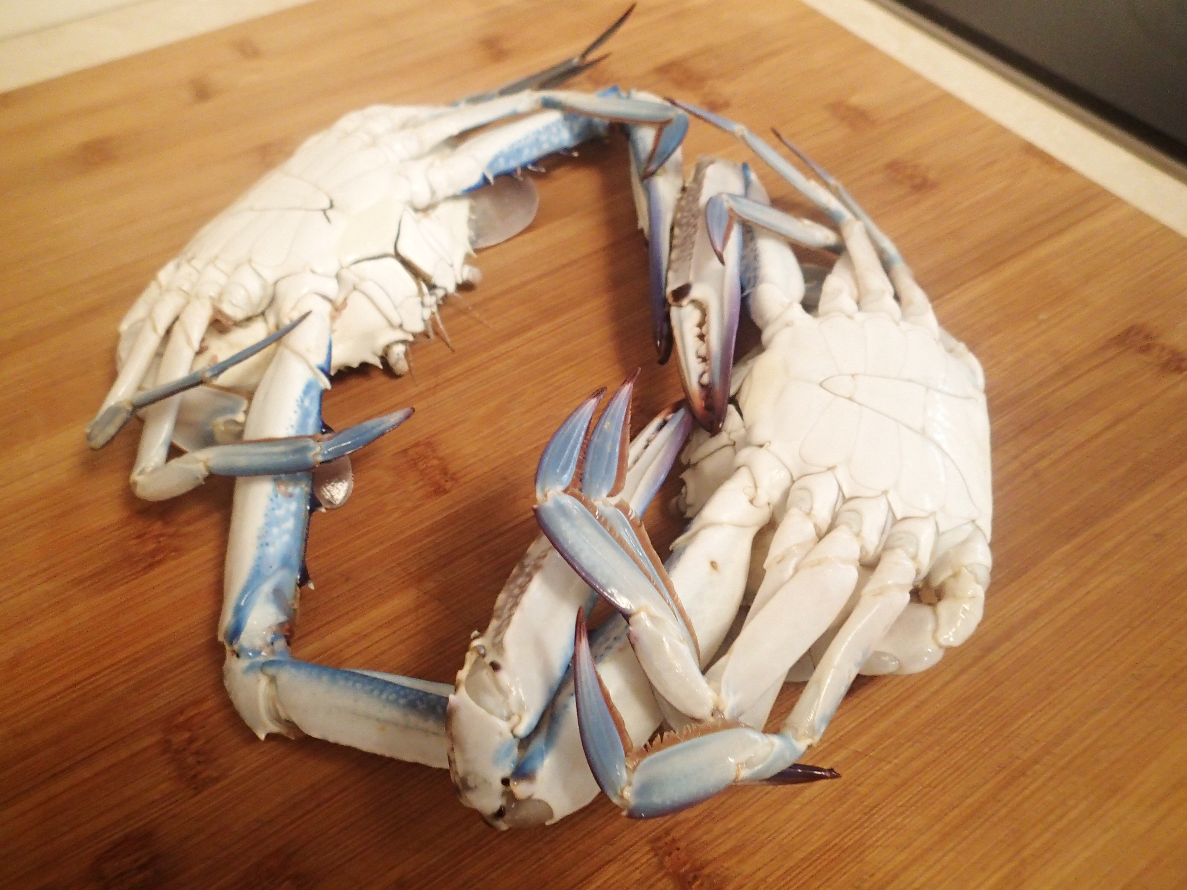 We were buying some seafood at Catalano’s on the weekend and the Blue Swimmer Crabs looked really good and fresh, so we decided to get a couple. I have wanted to try to cook Black Pepper Crab for a while, and now was my chance. I’ve cleaned cooked crabs before, but have never really dealt with raw crabs. Luckily for me,these days we have a handy thing called the Internet which provides handy instructions on how to prepare crabs. Also, I made Steve do it 😄