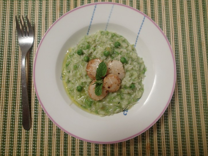 Now this meal was just the best! I’ve been getting back in to risotto recently. I’m not really sure why, as I was quite over it for a while and hadn’t made it for ages. But recently I’ve just been feeling like risotto. I had some scallops that I’d got from Catalano’s so I decided to make scallop and green pea risotto.