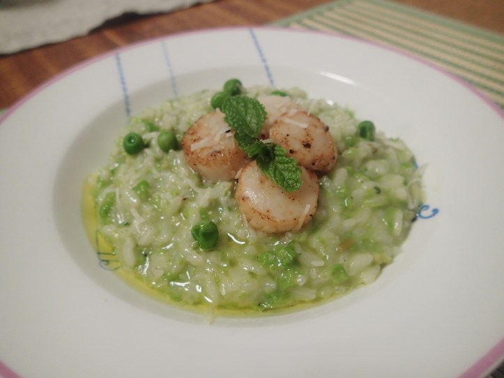 When the risotto was cooked and seasoned, I served it up with the scallops on top. It tasted great (and looked pretty too!) Will definitely be making this meal again soon.
