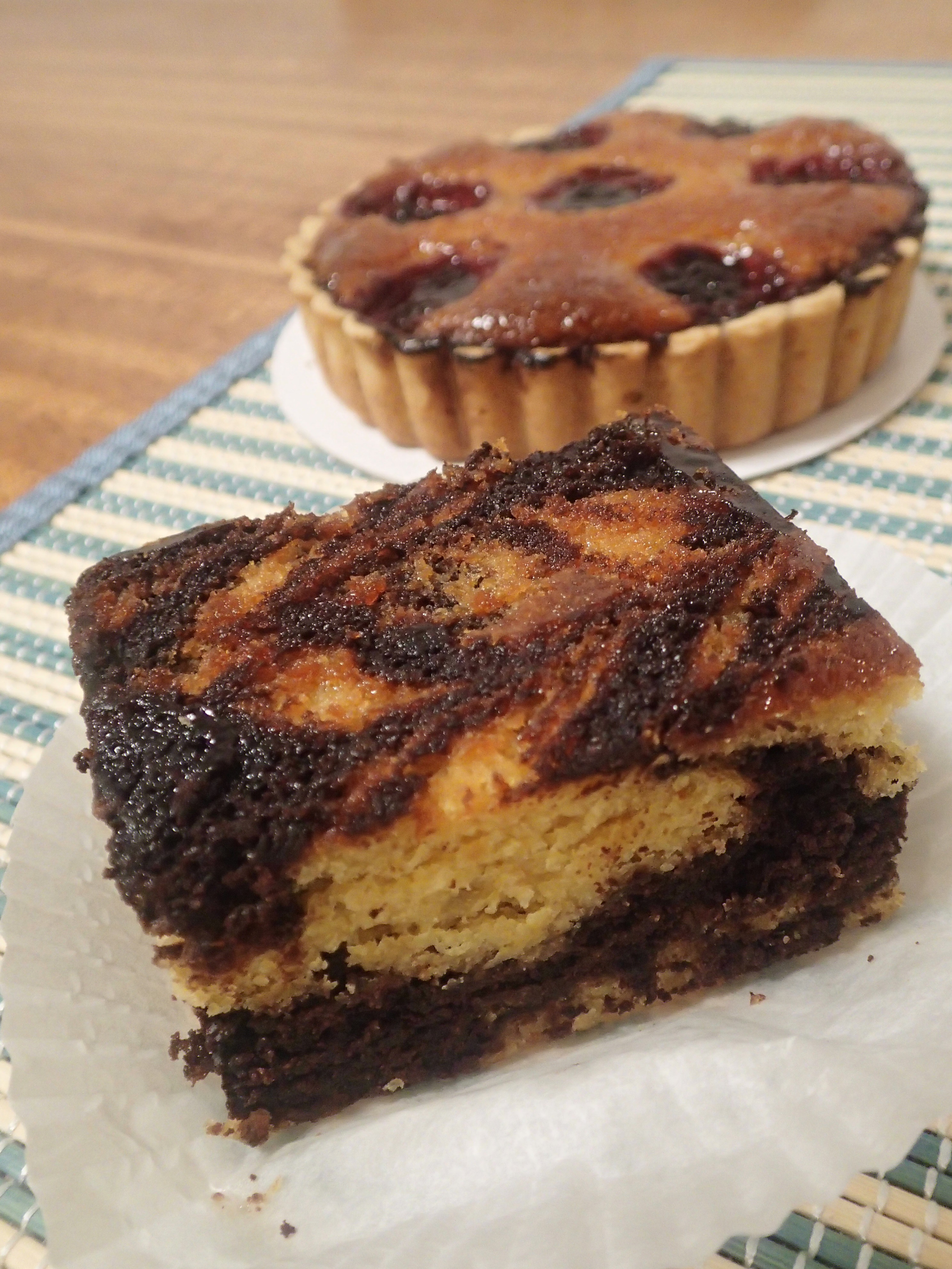 It was the second last day of work before the school holidays, so I thought I would drop by the nearby Pearl of Highgate Swiss Bakery to buy some cakes as a treat. If you have never been there before – well, do yourself a favour and get down there. I’m not much of a cake person generally, but these cakes are amazing. I got a boysenberry and orange tart and a chocolate & orange cake. Yum!