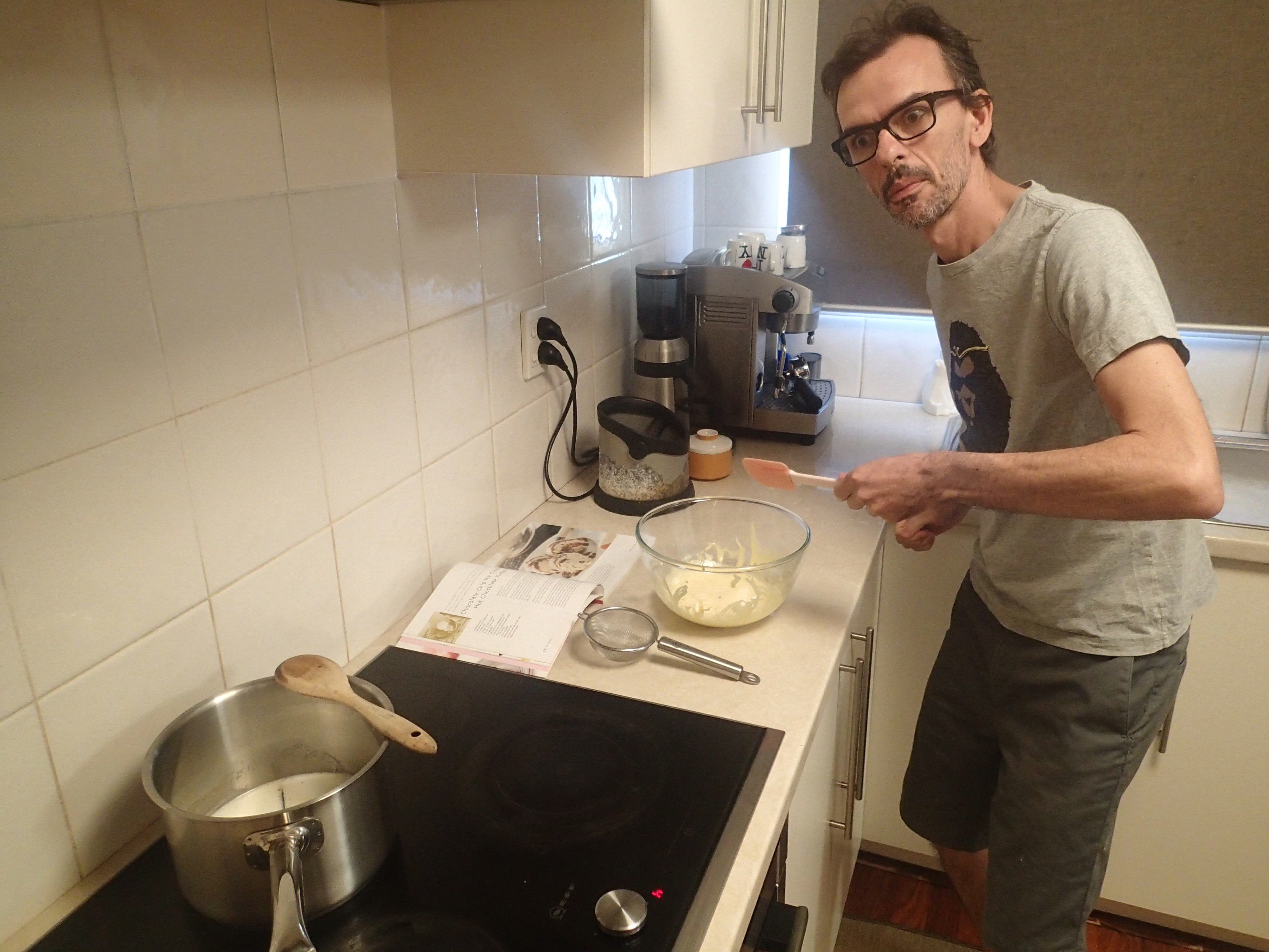 Over Easter, Steve’s brother Mike & his wife Taryn and their two kids were in town. Apart from me seeing them very briefly on a very brief trip to Sydney in January, the last time we saw them was when we were all in Japan around the same time last year. So it was really lovely to see them again. We invited them around for dinner on Easter Saturday. Steve made some icecream (vanilla chocolate chip) on Friday for dessert.