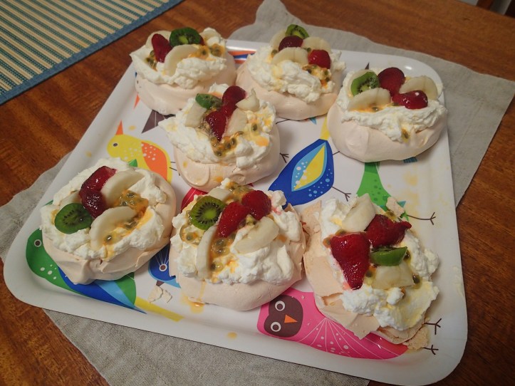 Because making icecream involves egg yolk, we had a bunch of egg whites left over. Not being one to like wasting things, I decided to make some mini pavlovas with the egg white, to go with the icecream.