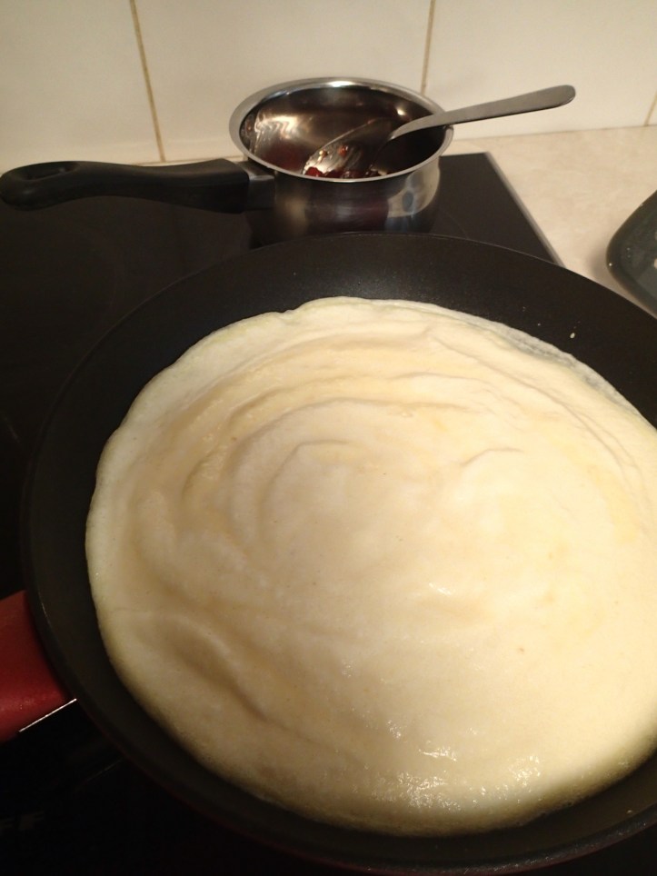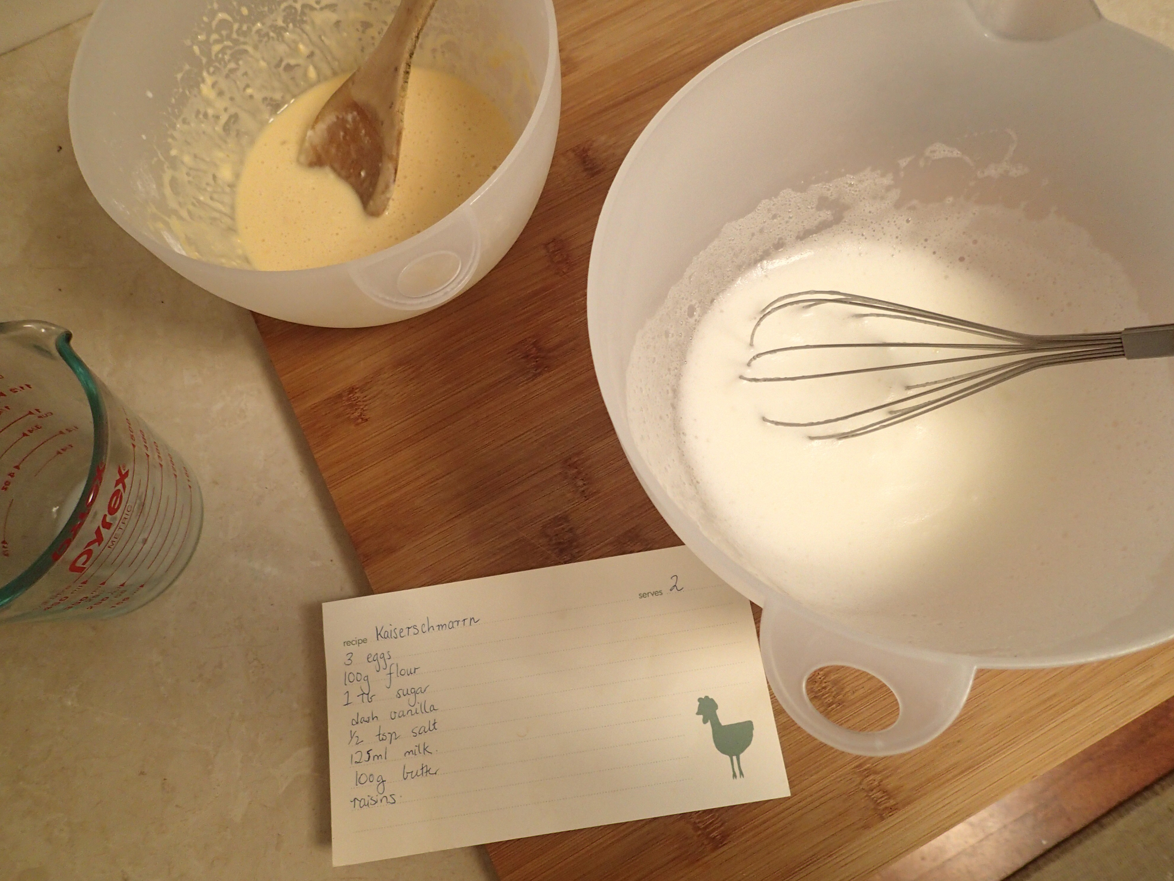 I also made the aforementioned Babaganoush with Haloumi and pomegranate, Currywurst, Banderellas (olives, anchovies,pickled onion & gherkin on toothpicks), Paprika Chorizo and of course Austria’s very own – Kaiserschmarn. Here it is being prepped. Sadly there are no pics of the finished dish.