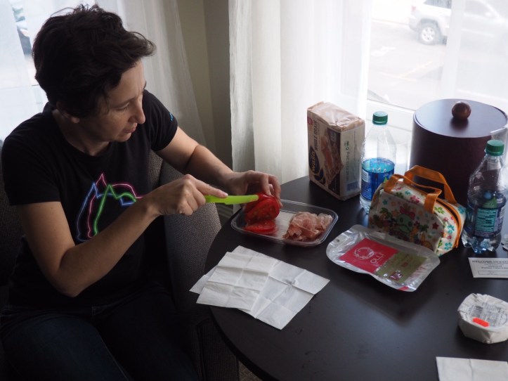 I think I managed to get about 15 minutes of sleep all up on the flights, so needless to say, I was pretty zonked. After checking in to our hotel, we managed to go for a bit of a wander around nearby, before I decided I was in no shape to be out in public. So we picked up some cheese and meats from a local shop and ate them back at our hotel.