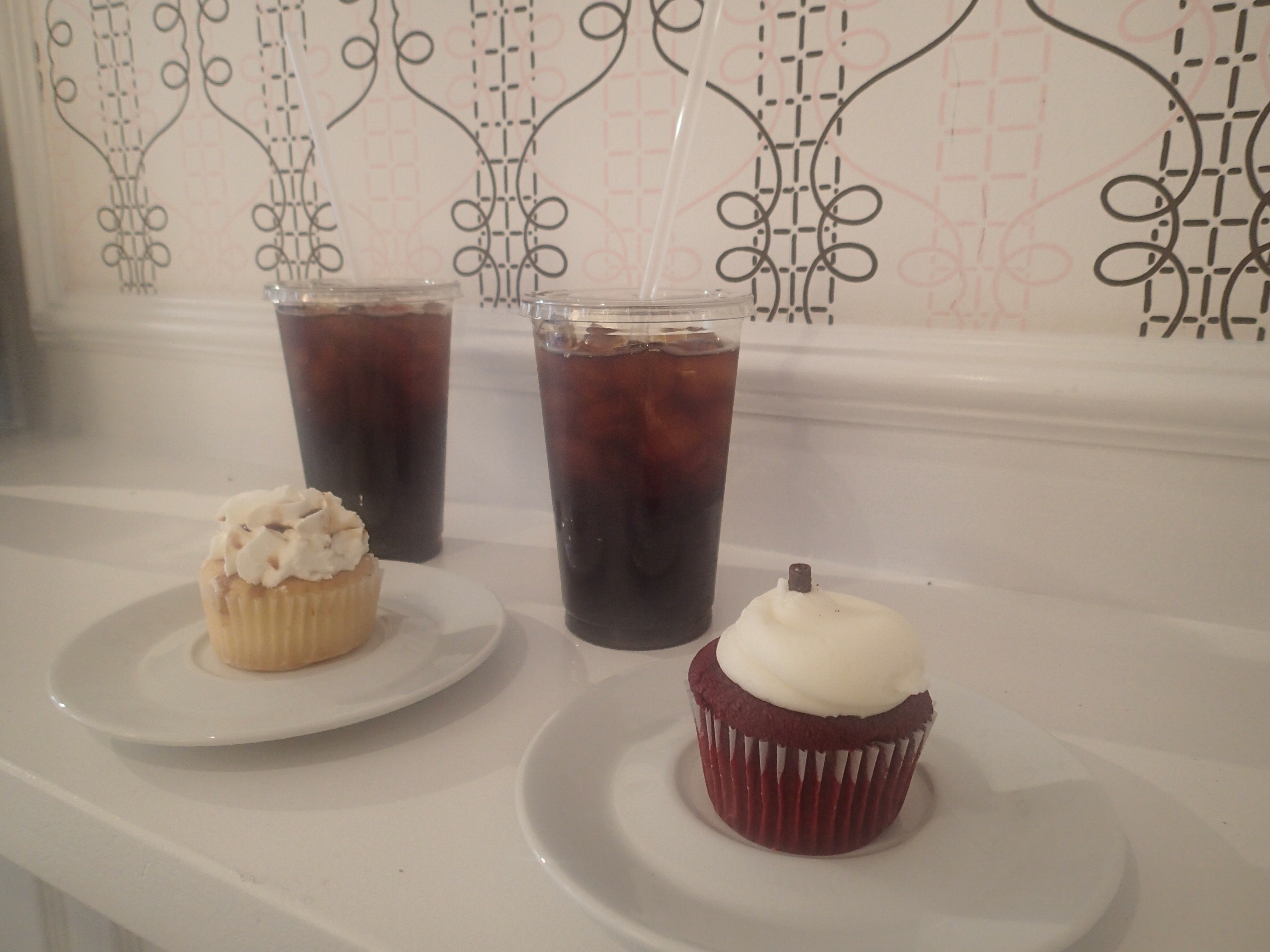 A walk was in order after all that food so we went and checked out the Boston Gardens and Boston Common. All that walking though, made us hot and thirsty so we stopped in a cute cafe for a cold brew coffee….and couldn’t resist the cupcakes. Steve had a Root Beer Float cupcake and I had Red Velvet.