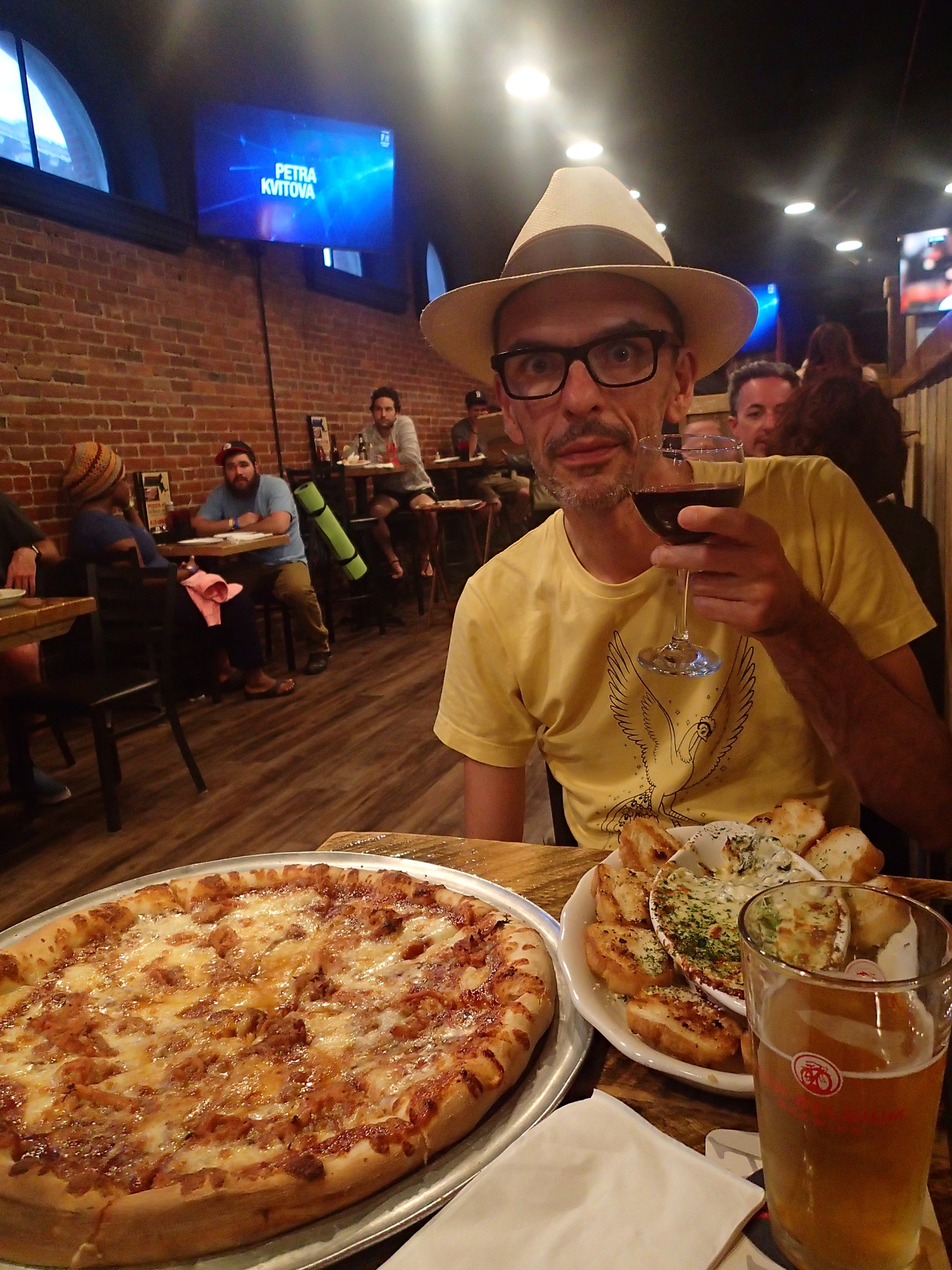 On Sunday night at the end of the festival, we had a massive pizza and some artichoke dip for dinner. We really must learn to order less food.