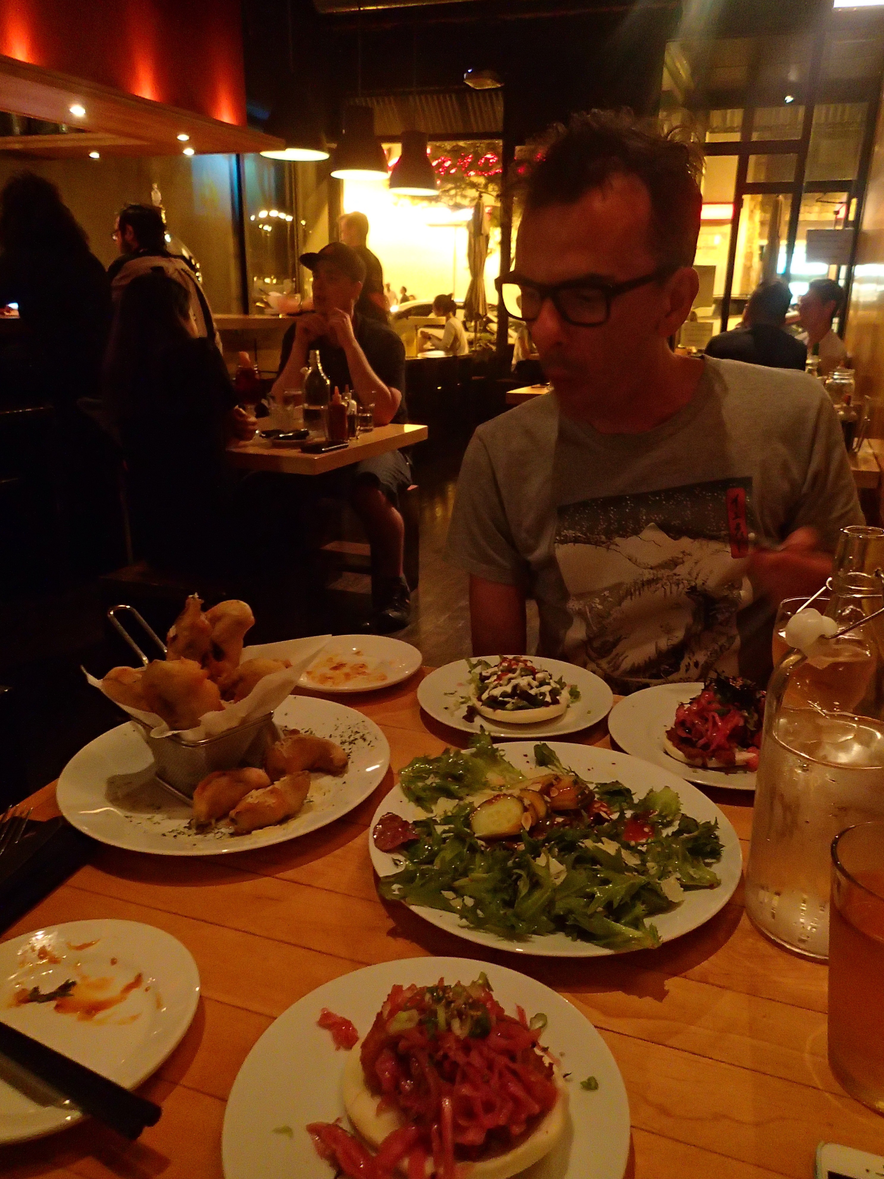 We went for dinner at a place accross the road, which sounded interesting on their menu, but ended up being a bit disappointing. We had some steamed buns with things like chicken and shrimp on them, but they weren’t great, as well as tempura avocado and mushrooms – also average. It was also waaay too much food again so we got the leftovers put in a box to takeaway and put in the fridge at the hostel. Which is where they stayed.