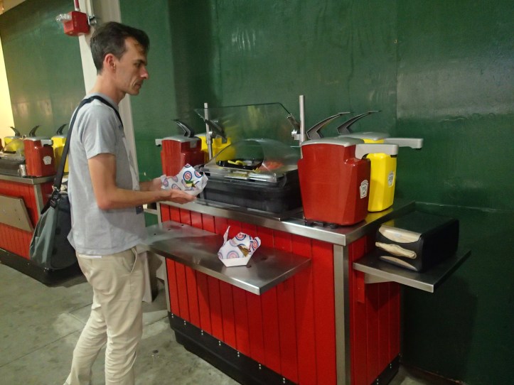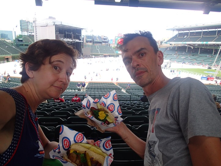 After hanging out there for a while, we headed in to Wrigley Field and had some hot dogs for dinner. They were good. As they should be. I mean, this is Chicago after all.