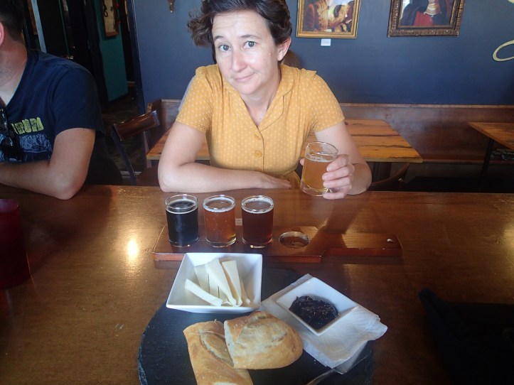 We went to Jackalope Brewery instead. I had a beer flight. Some of the beers involved peaches.