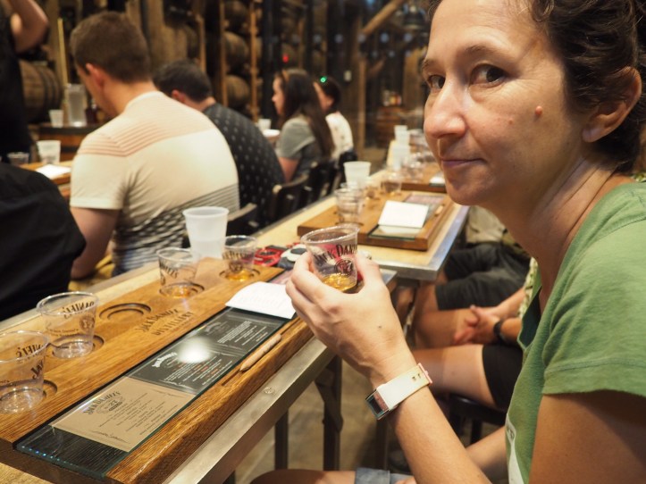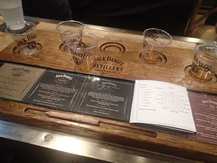 At the end of the tour we got to do a tasting of 4 Jack Daniels whiskeys. Incidentally, Lynchburg is a dry county and the sale of alcohol is not allowed. There is a small loophole that allows for the distillery to serve these samples on a tour, but that is all. Crazy.