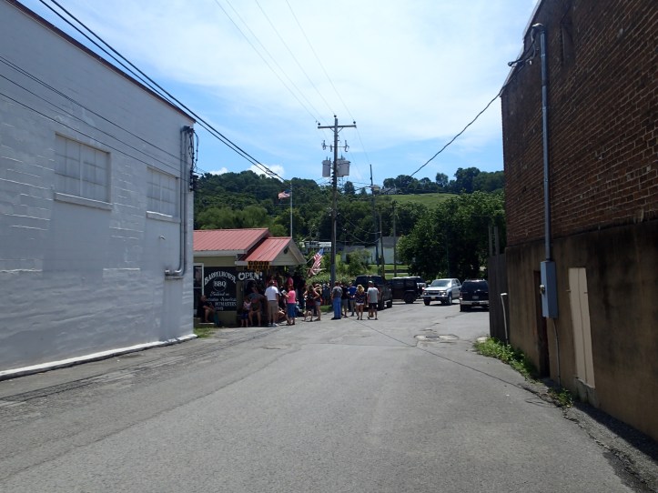 Tour done, it was time for lunch. Some prior investigation old us that Barrelhouse BBQ was the place to eat BBQ when in Lynchburg. Seems everyone else had the same idea.