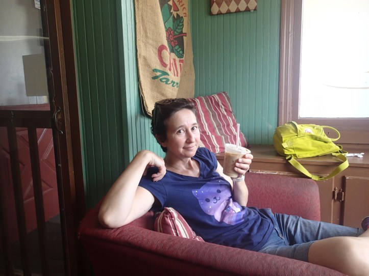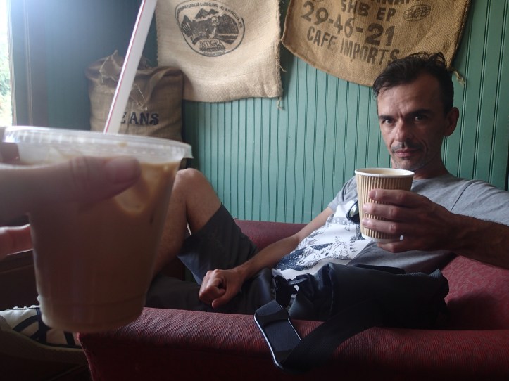 Then we decided to go on a big drive and visit the quaint country town of Helen which for some reason (there is a reason, but I can’t remember what it is) is a German town. I also wanted to see the Chattahoochee river. It was really hot when we got there. We had coffees. The staff in the cafe liked my Neko Atsume t shirt.