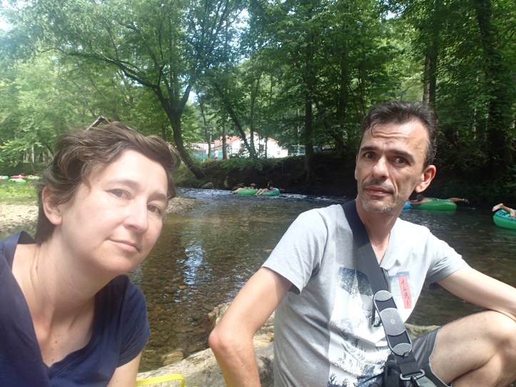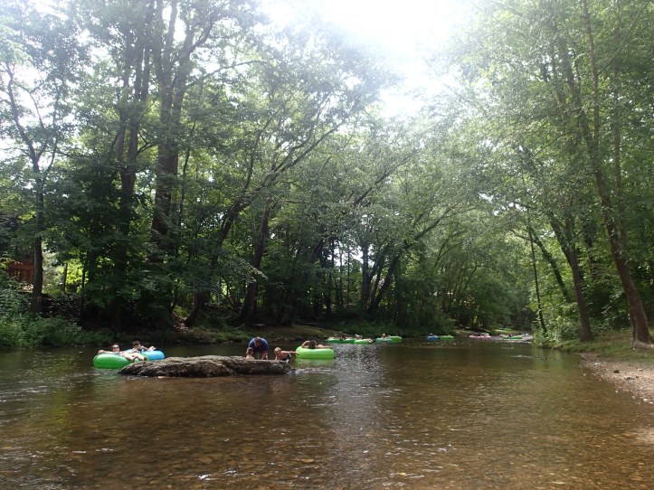 Checking out the river. The smart people were floating down it on tubes.