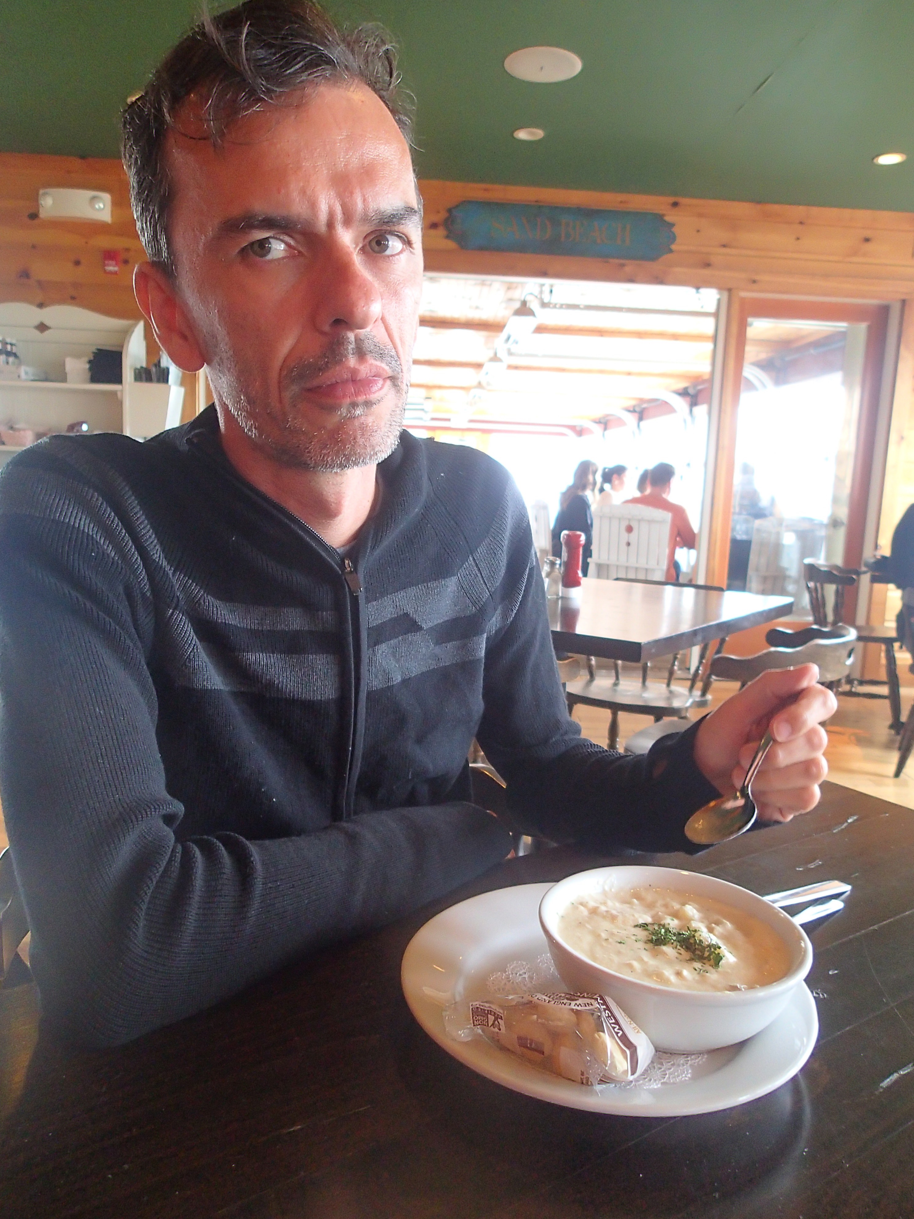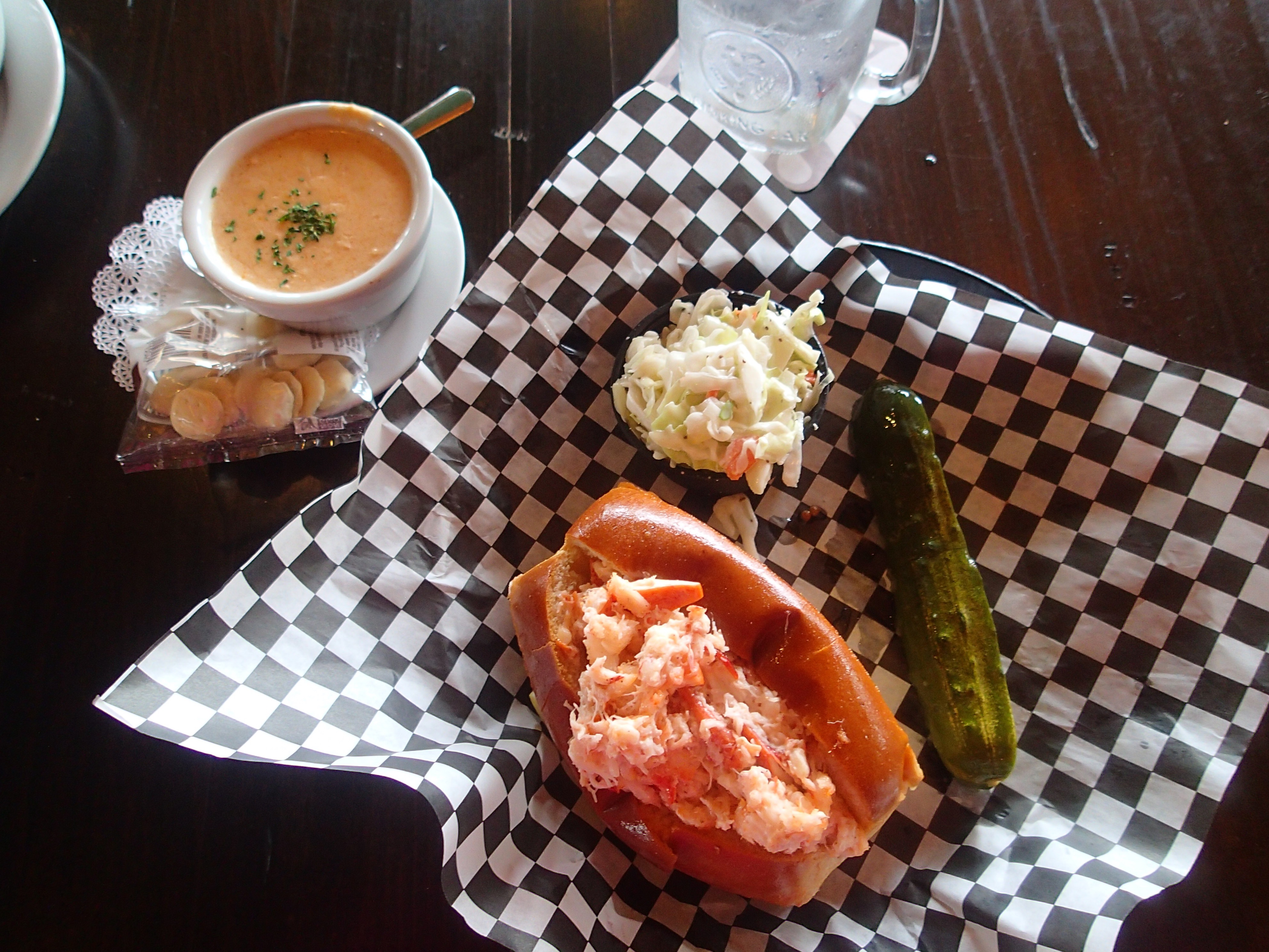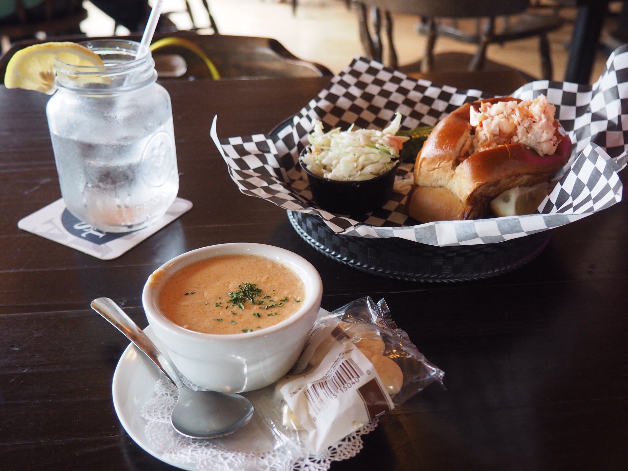 After a few hours in the park, we started to get hungry and decided lunch was in order. We bid farewell to Acadia and headed to nearby Bar Harbor. It was really busy there and quite touristy, but still a cute little town. We found a lobster pound by the water and went straight in. Steve ordered a clam chowder and I got (just for something a little different) a lobster roll with a side of lobster bisque.