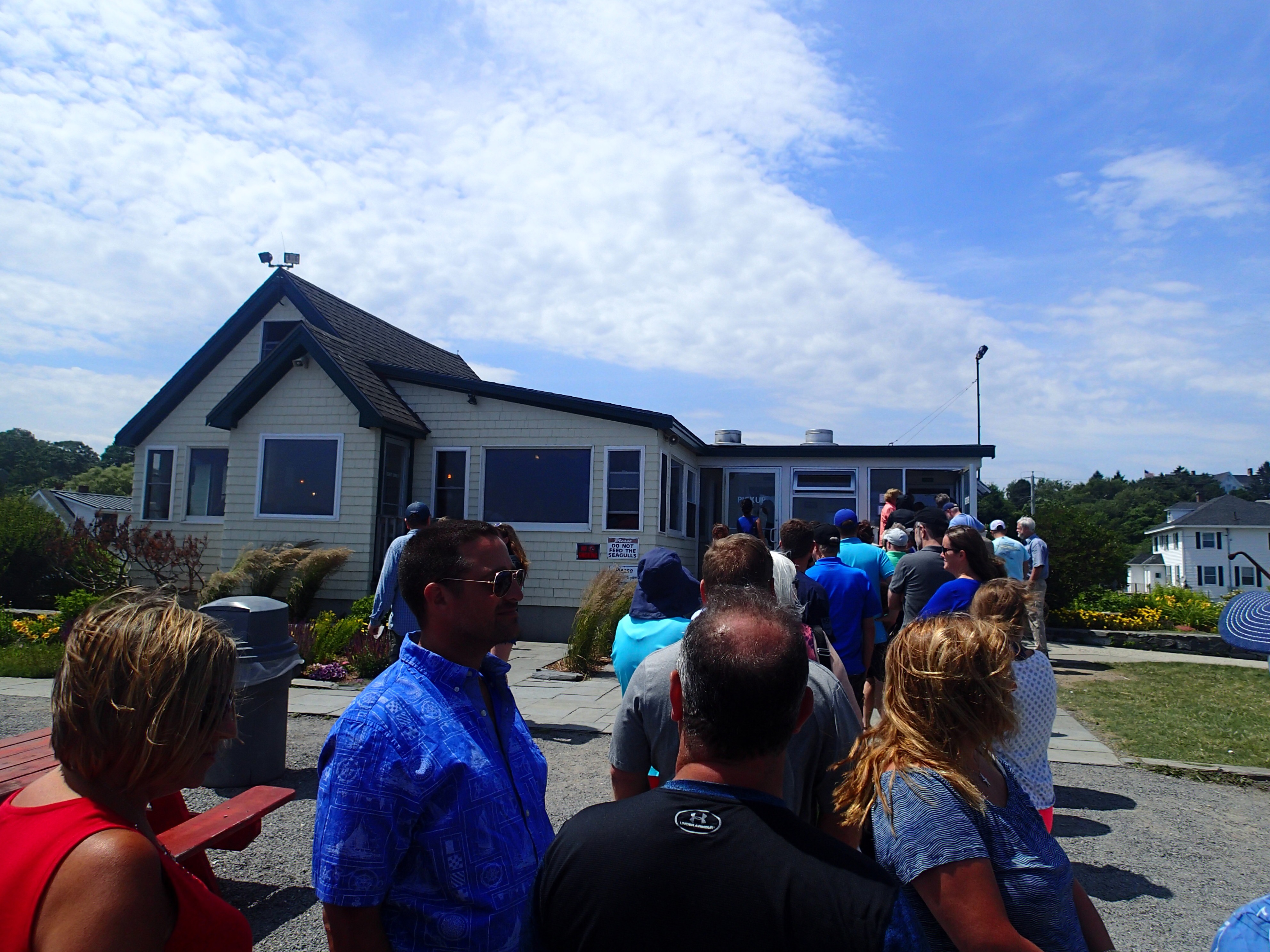 It was lunch time when we got in to Portland, so after picking up our hire car, I set about about figuring out where the closest and best lobster roll could be found. After some investigation we decided to head to The Lobster Shack at Two Lights. Again, there may have been some small confusion in thinking that it was only 13km away when it was in fact 13 miles, but look, who cares, we were on our way already by the time we worked that out. When we got there, the car park was full. Seems we weren’t the only ones with this idea. We eventually got a spot, then noticed the massive line waiting to get their share of lobster. Well, we are here now, and I’m not leaving without a lobster roll, so we joined the cue.