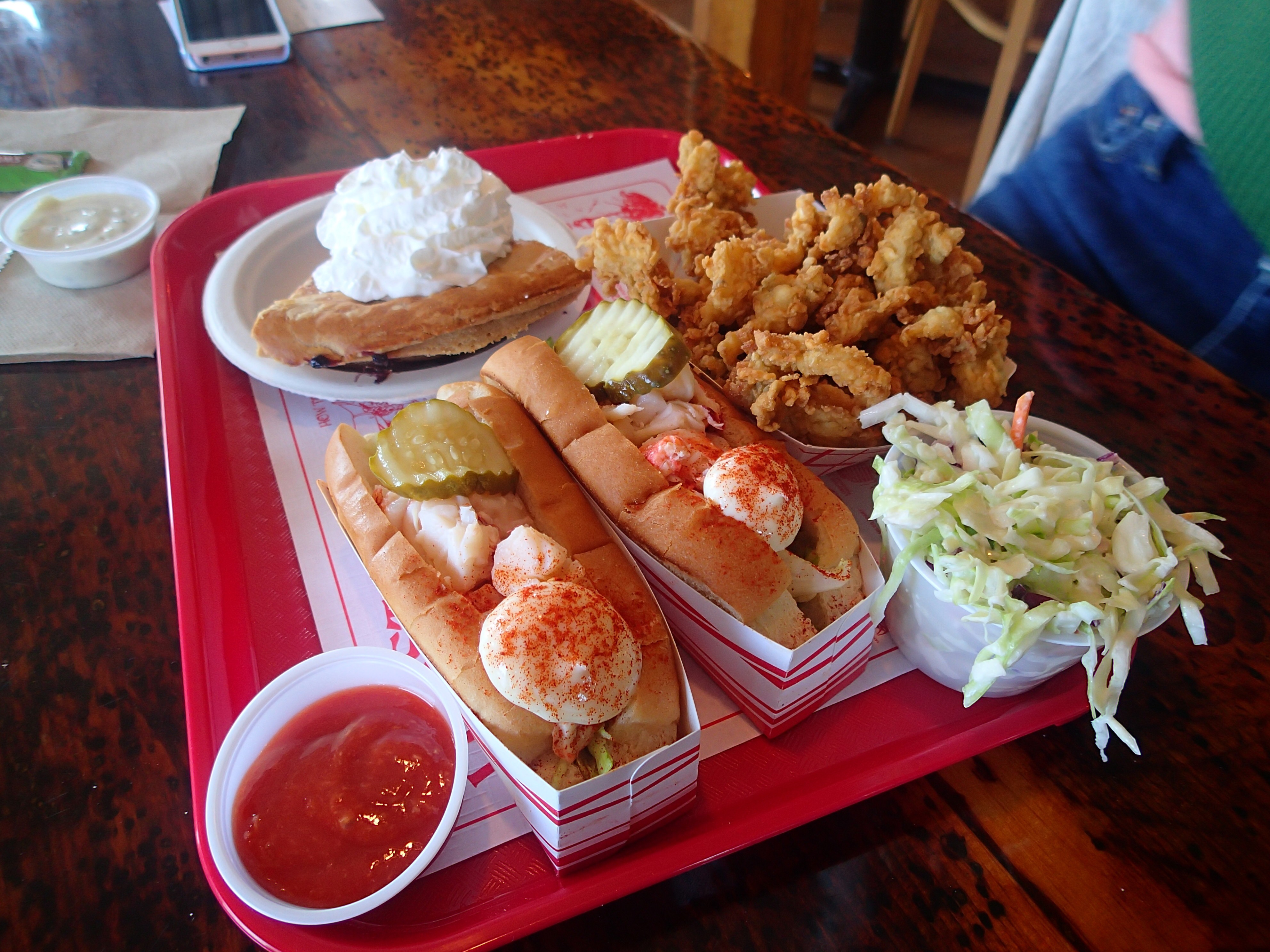 After a bit of a wait, it was finally our time to order. We got a lobster roll each and some fried clams, because everyone else had them and they looked delicious. We decided to sit inside as it was just too cold and windy outside. And when the lobster rolls and clams arrived they did not disappoint.