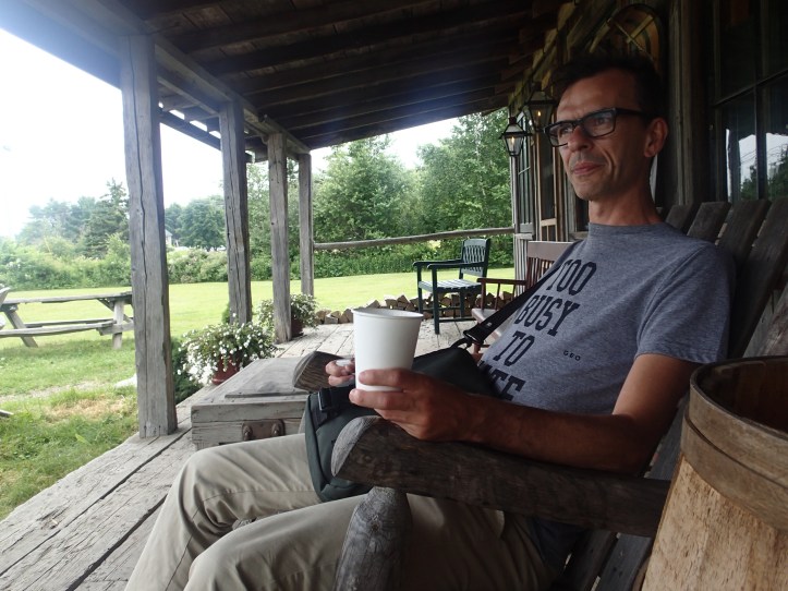 All that wandering around on top of a mountain was making us thirsty, so a coffee was in order. We’d seen a place that looked cool the previous day and decided to go find it. We weren’t sure if it would be open, or if indeed it even was a cafe. Luckily, it was both open and a cafe. Win. It was really cool too. Customer service was a little frosty, but the coffee was good and sitting out on the porch was even better.