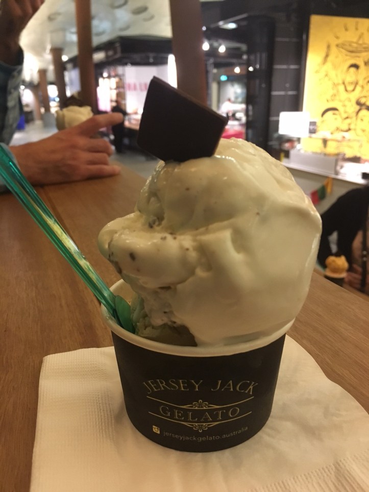 After ramen we decided that the only sensible thing to do was to get icecream. We wandered over to nearby Yagan Square and got some delicious icecream from Jersey Jack Gelato. I wanted two flavours so I had to get a double, which in hindsight was probably a little too much icecream. Although it was delicious.