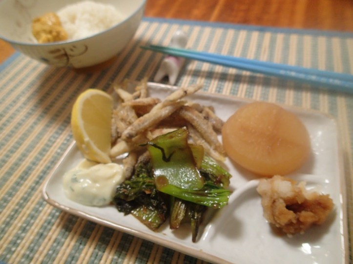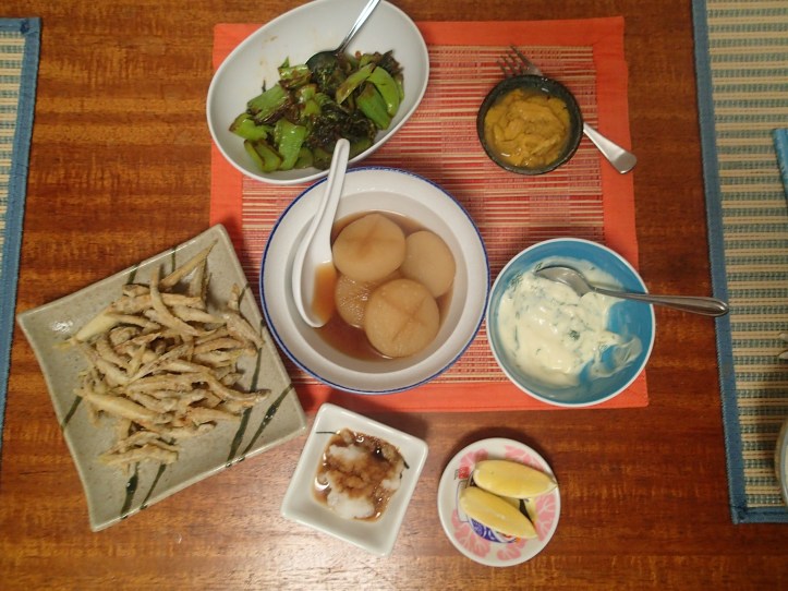 I Fried up the whitebait and made some other Japanese dishes like Braised Daikon.