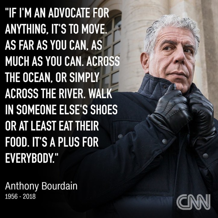 So it was an extreme shock to hear of his passing on Friday. I’ll admit I almost cried. I didn’t, but it was close. (Although there’s no telling what will happen when I next watch an episode of No Reservations or Parts Unknown – something I haven’t been able to do yet) I know I am echoing the sentiments of lots of his fans world wide in that, even though I didn’t know him personally, I feel like I have lost a friend. Heck, we don’t even call him Anthony Bourdain in our house – it’s just Tony 😊