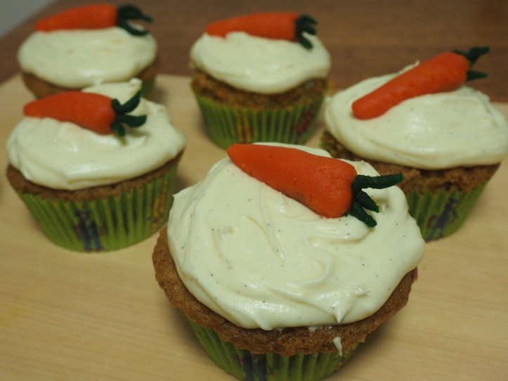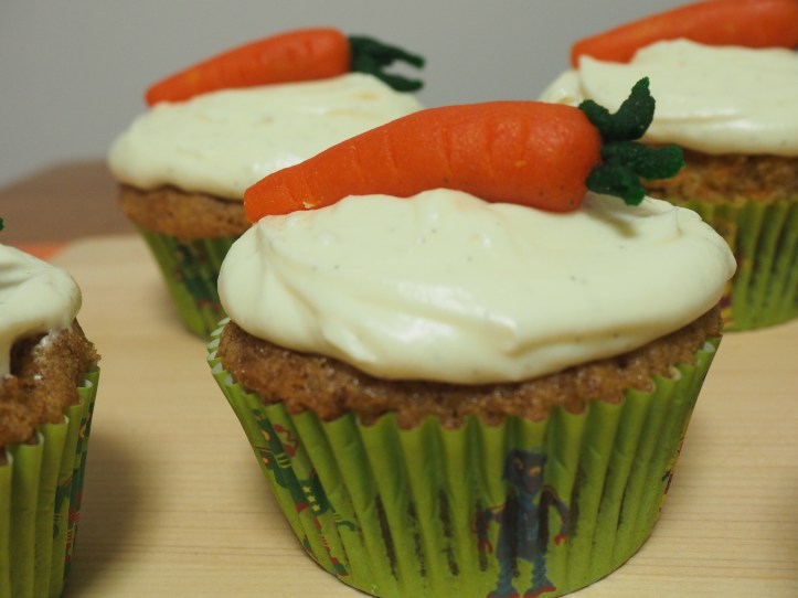 And last but not least for this post, we have Carrot Cupcakes. I’m on school holidays at the moment and it’s been raining all week, so baking cupcakes seemed like the right thing to do. I do love carrot cake of all types, though I can’t eat it much or often, as too much sugar and wheat tends to upset my stomach. I was prepared to risk it this time though. I only made 6 anyway.
