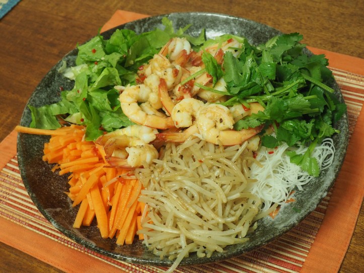 Speaking of Vietnamese food and my new addiction, here’s a Vietnamese-esque salad with prawns. Also very delicious and light.